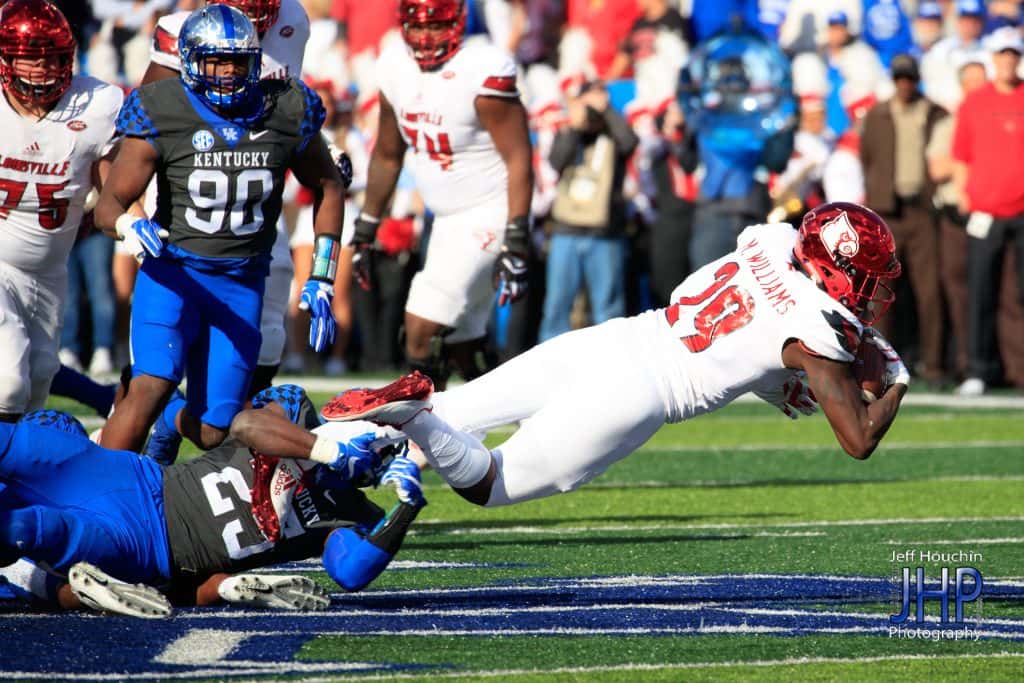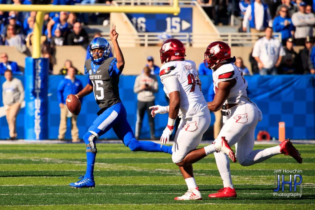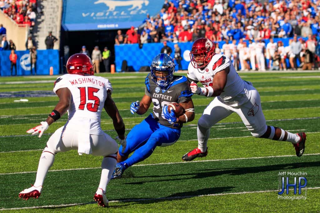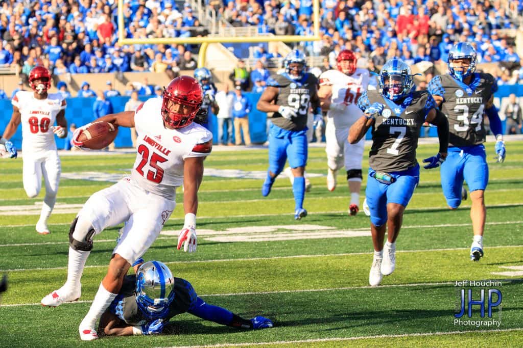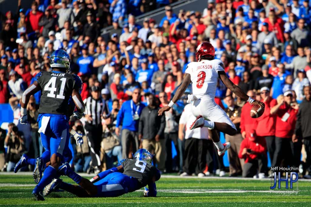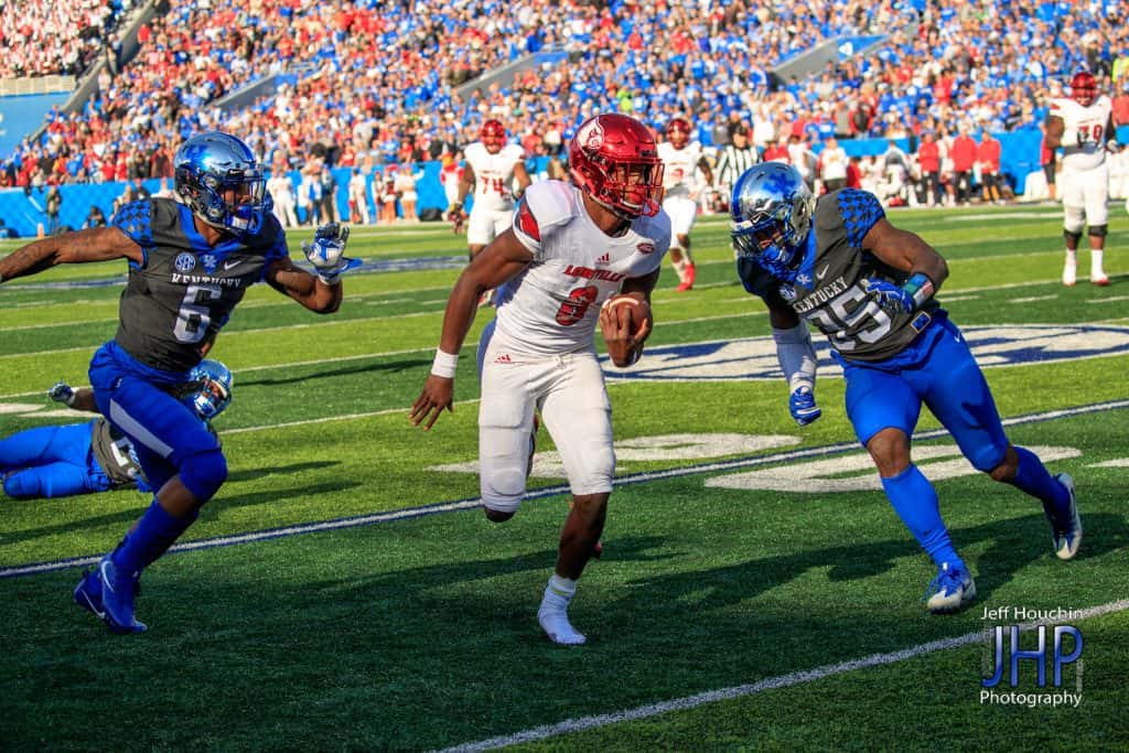 The good news for Kentucky Saturday — it won the coin toss. The bad news — it deferred and let Louisville have the football. The Cardinals and quarterback Lamar Jackson shredded the Kentucky defense from start to finish while demolishing a demoralized Kentucky 44-17. Jackson, the 2016 Heisman Trophy winner, ran for 156 yards and completed 15 of 21 passes for 216 yards and two scores to help the Cardinals amass 562 yards.