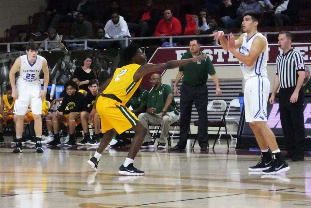 Lexington Christian exhibited their physical strength right out of the gate, muscling their way to baskets inside the paint and controlling both the offensive and defensive glass. After the opening run for the Eagles, KyKy Tandy got the Blazers as close as they would be for the rest of the game when he connected on a long three with 6:10 to go in the first quarter.