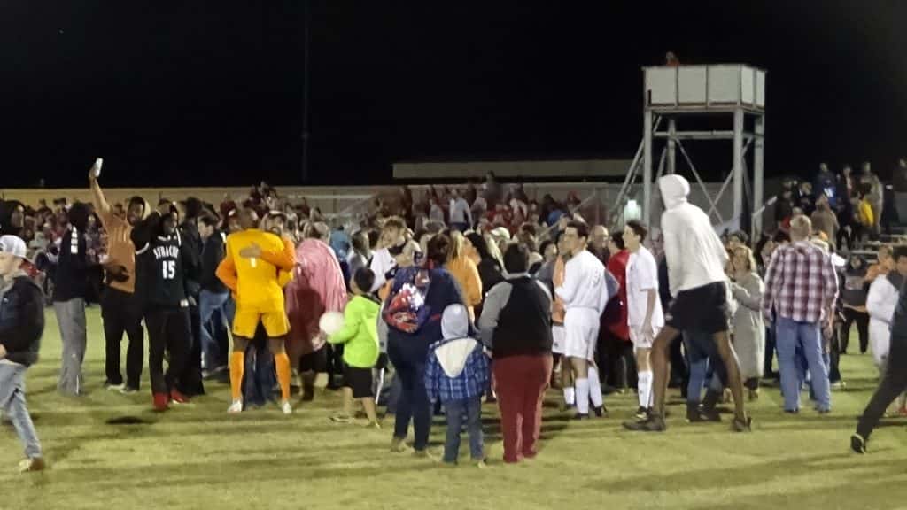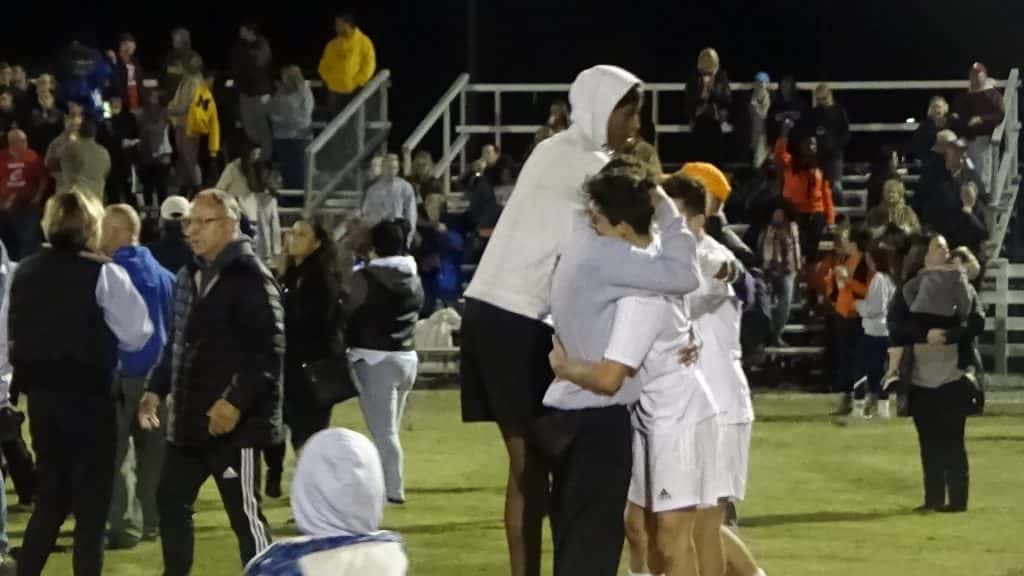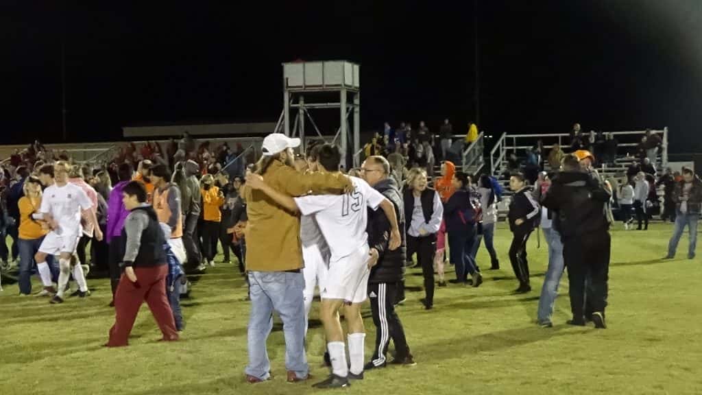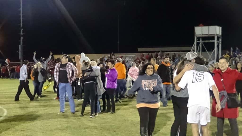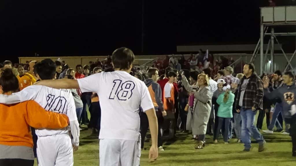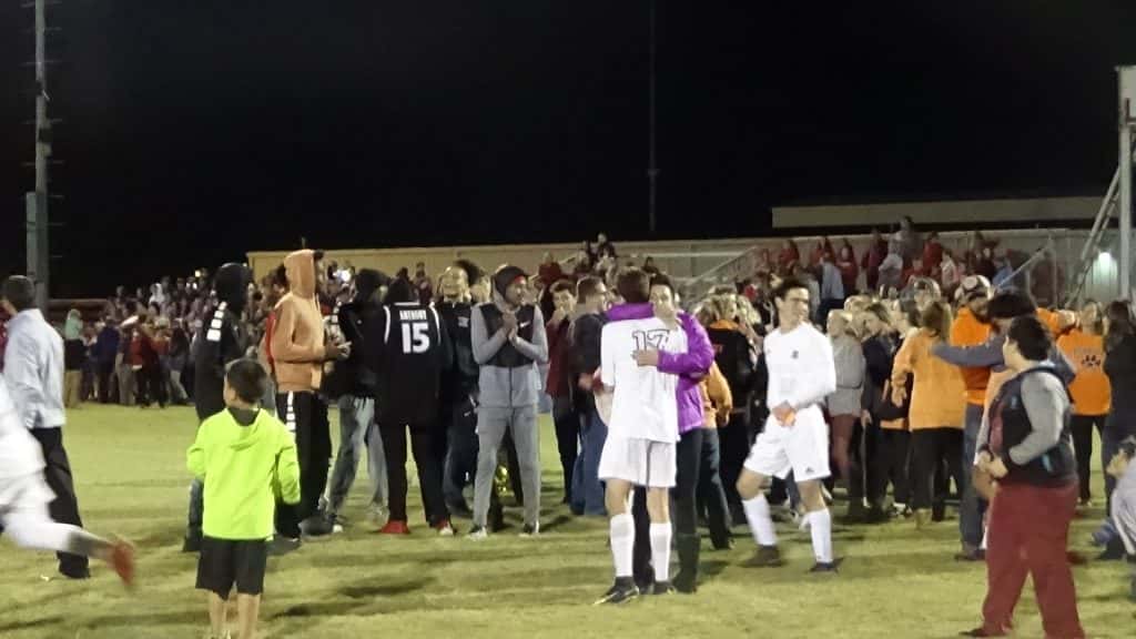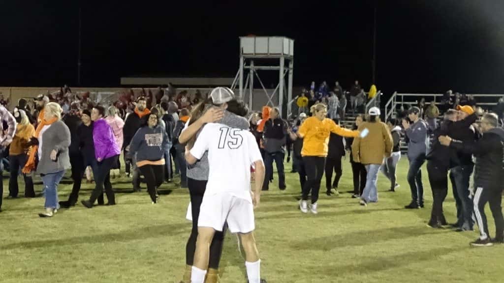 The Hopkinsville Tigers earned their first-ever win in the state tournament with a 2-1 victory over hosts Calloway County. Here are some photos from the celebration.