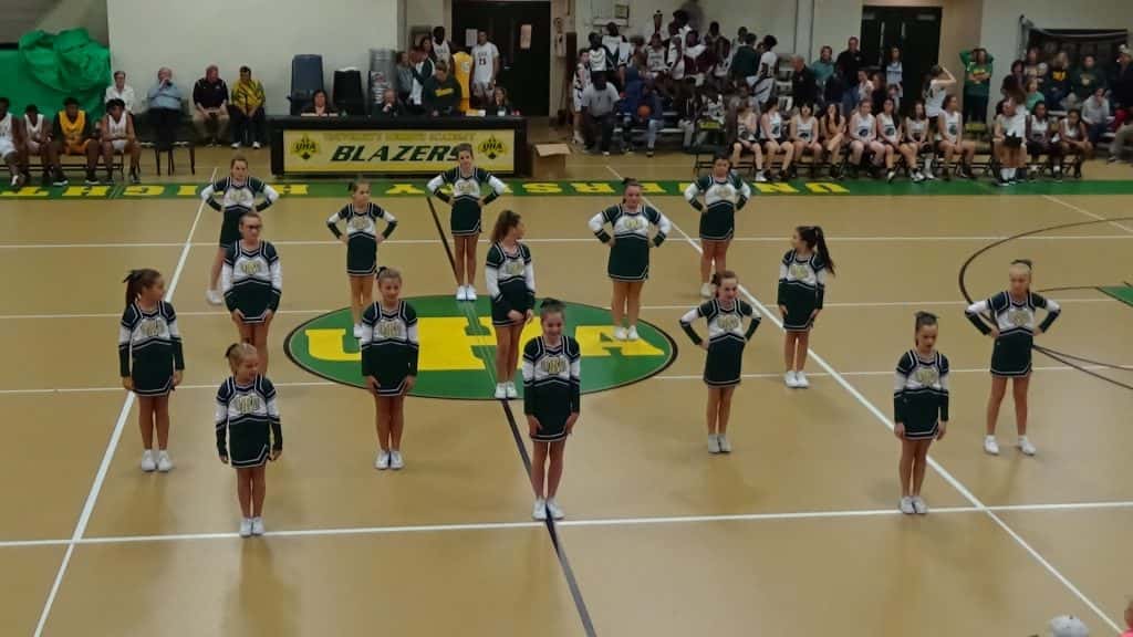 In addition to the boys’ and girls’ basketball teams, University Heights Academy showed off its Jr. Pro and middle school boys’ basketball teams Friday night at Meet the Blazers. Also presented were the high school and middle school cheerleading teams and the color guard.