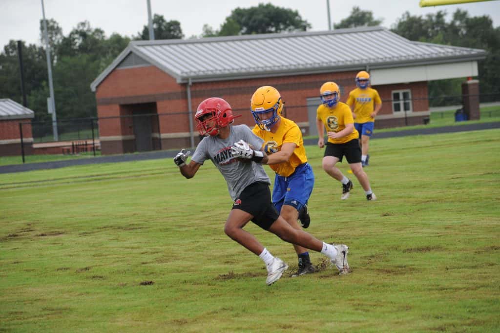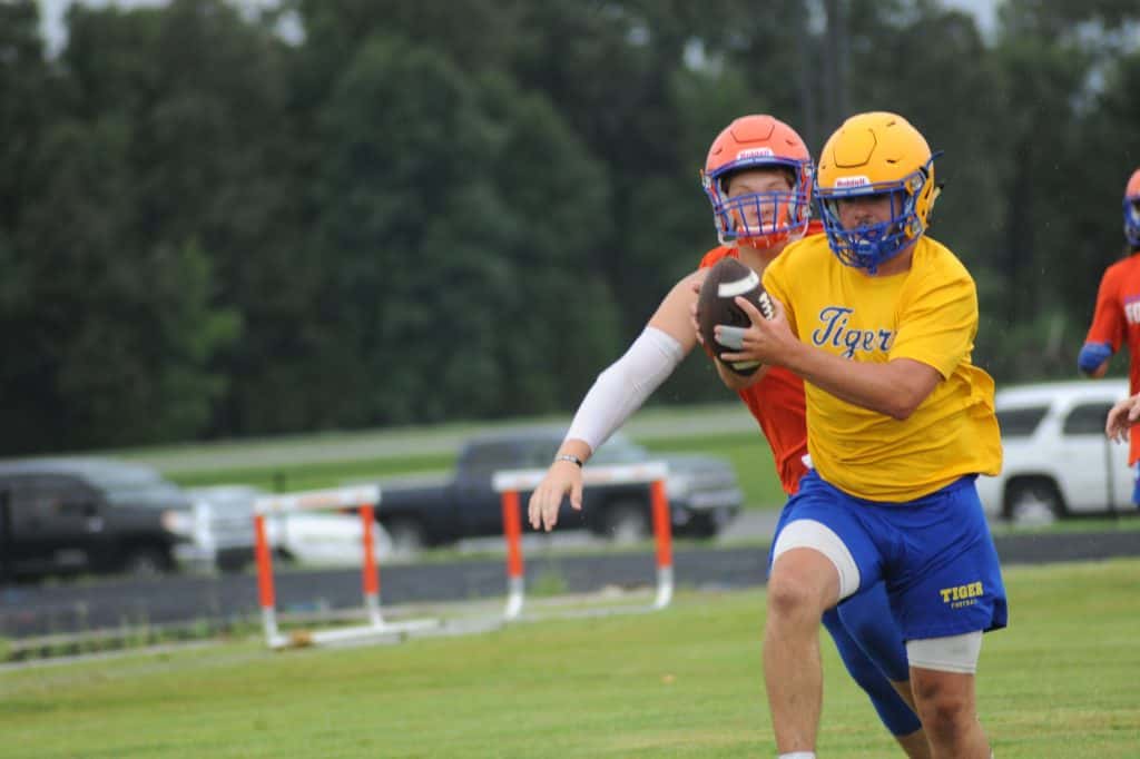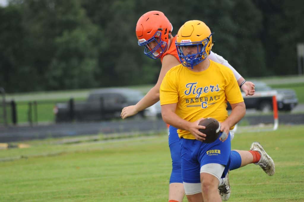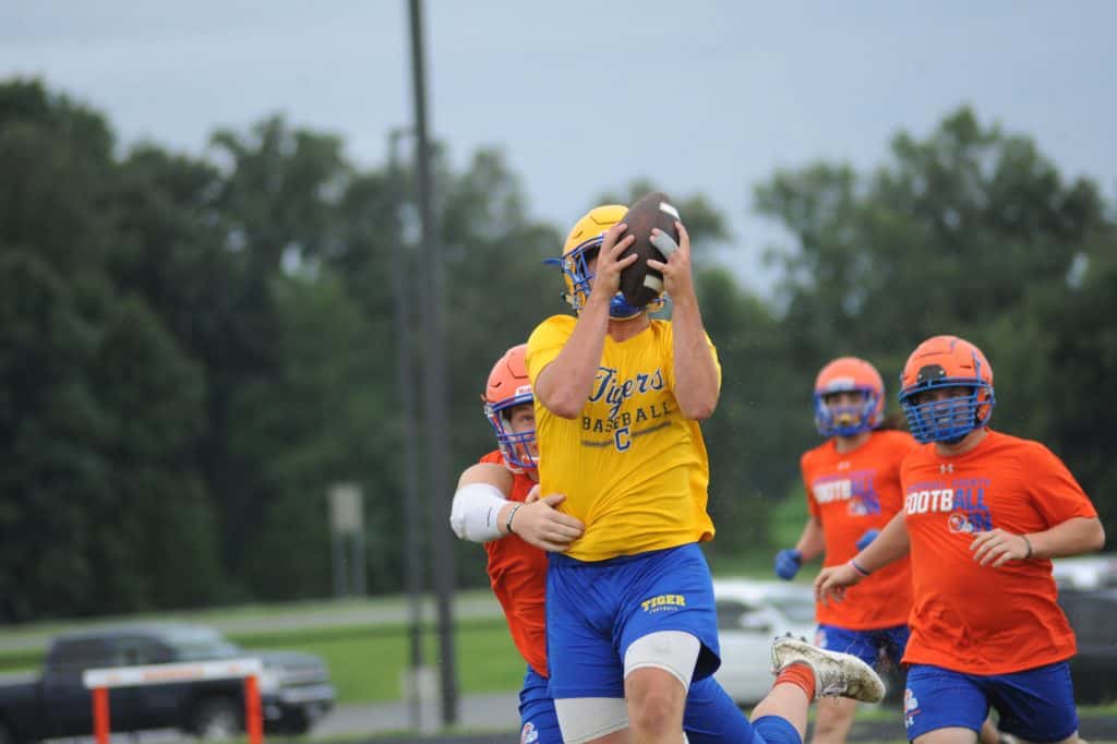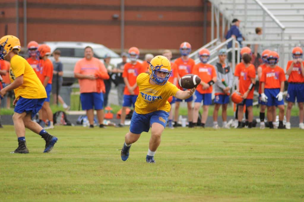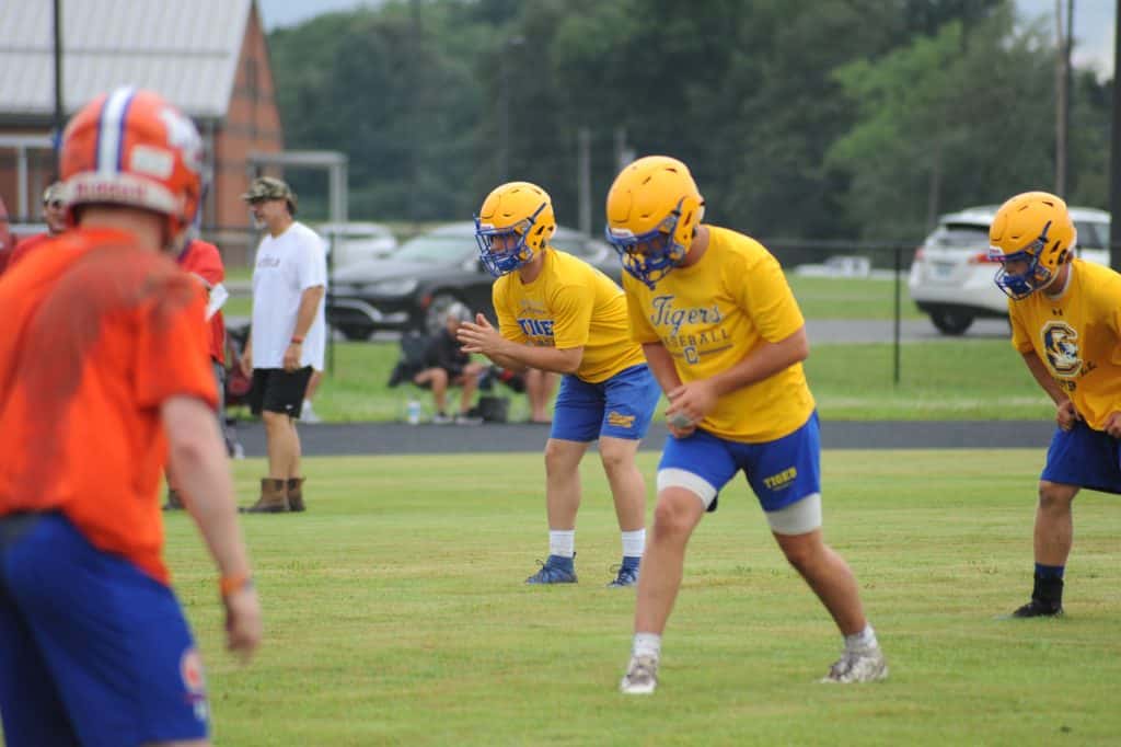 The Caldwell County Tiger football team saw its final 7-on-7 football action of the summer on Monday when it faced Marshall County and Mayfield in a three-team matchup at South Marshall Middle School in Benton.