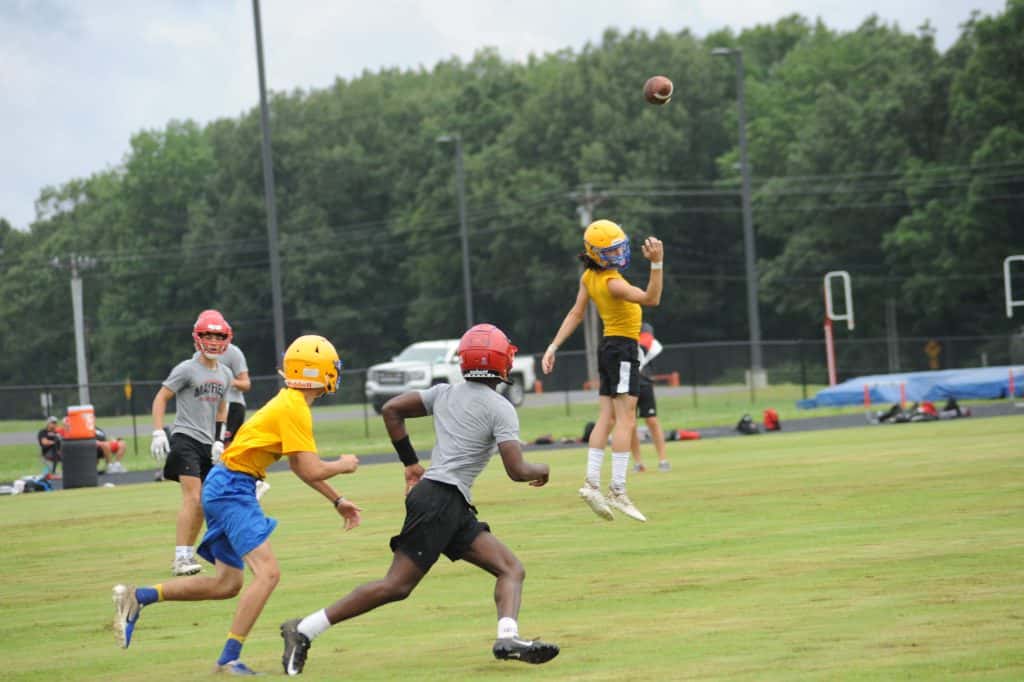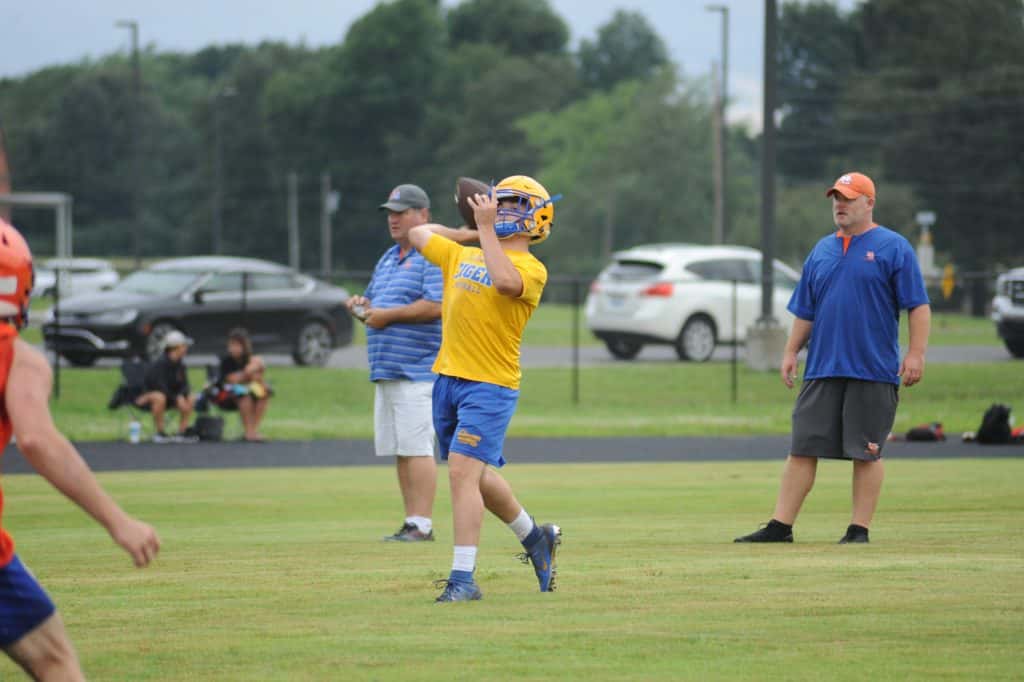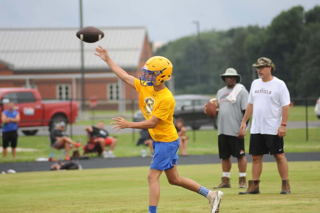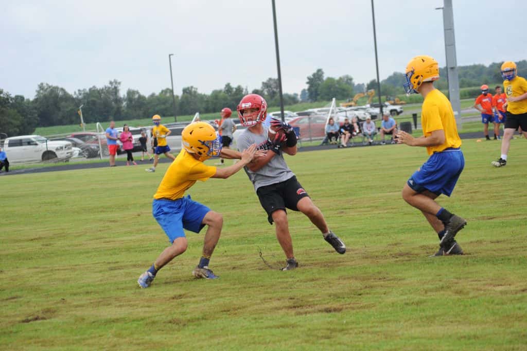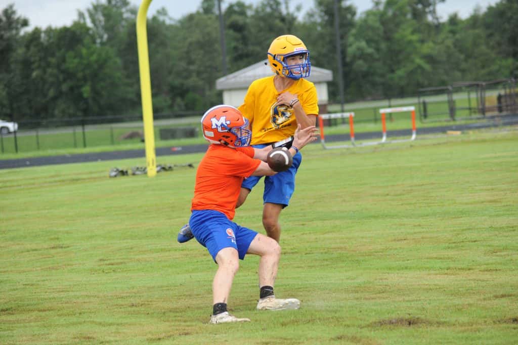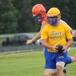 The Caldwell County Tiger football team saw its final 7-on-7 football action of the summer on Monday when it faced Marshall County and Mayfield in a three-team matchup at South Marshall Middle School in Benton.