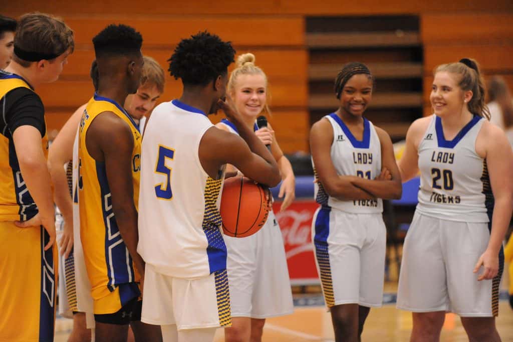 Besides introductions, the event included skills contests, an auction and brief scrimmages by the Tigers and Lady Tigers.