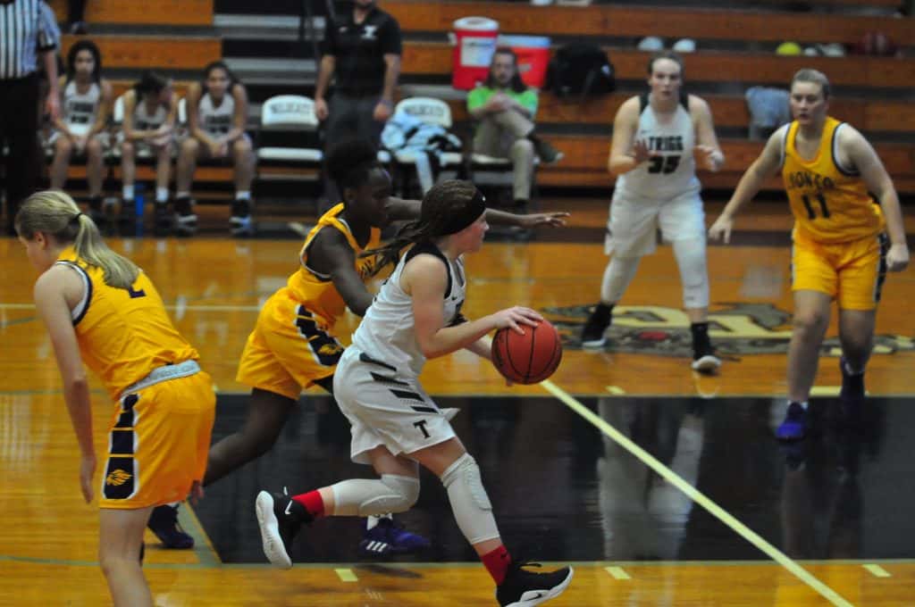 Trigg County is off to a 3-0 start in Fifth District play after the Lady Wildcats beat Lyon County 58-42 Tuesday. Photos by Ashlyn Brown.