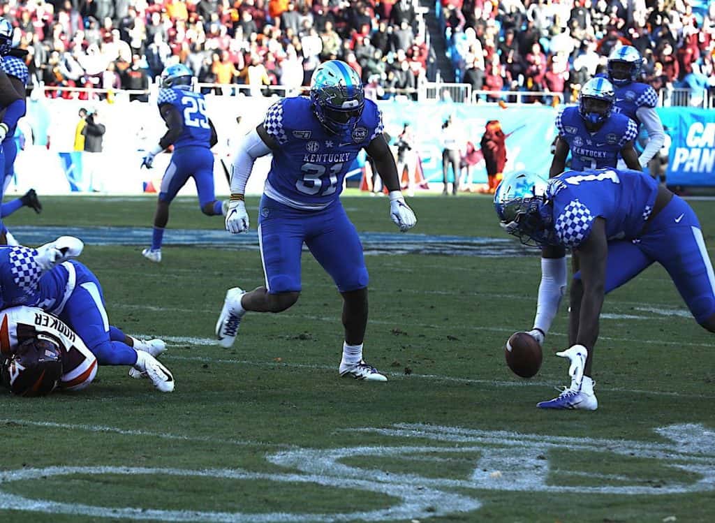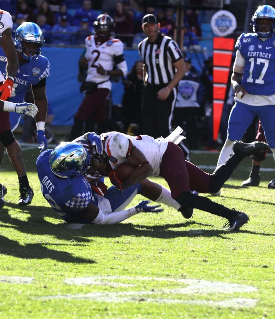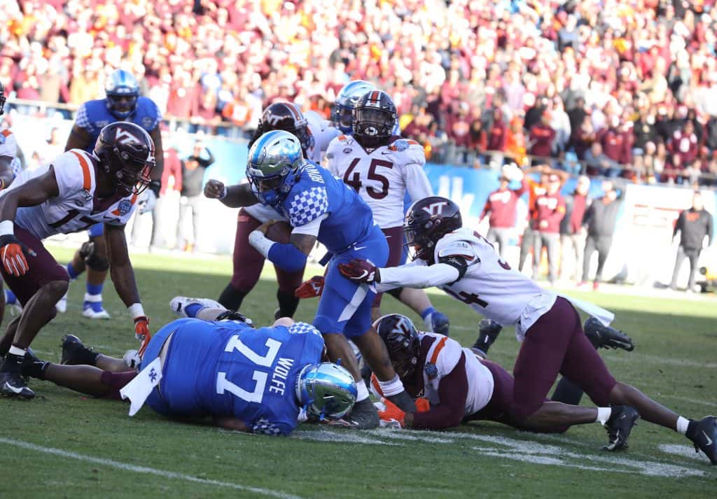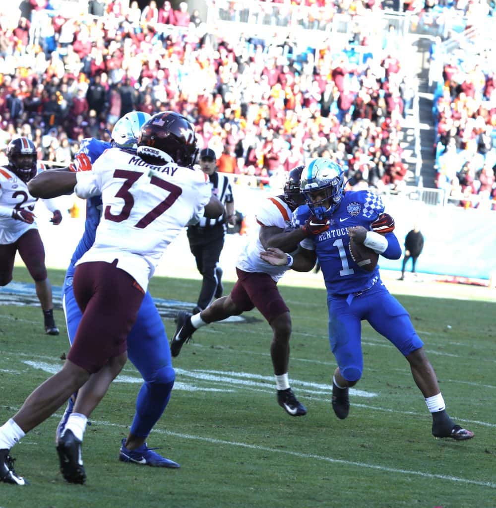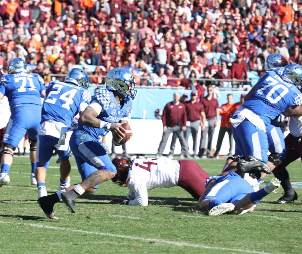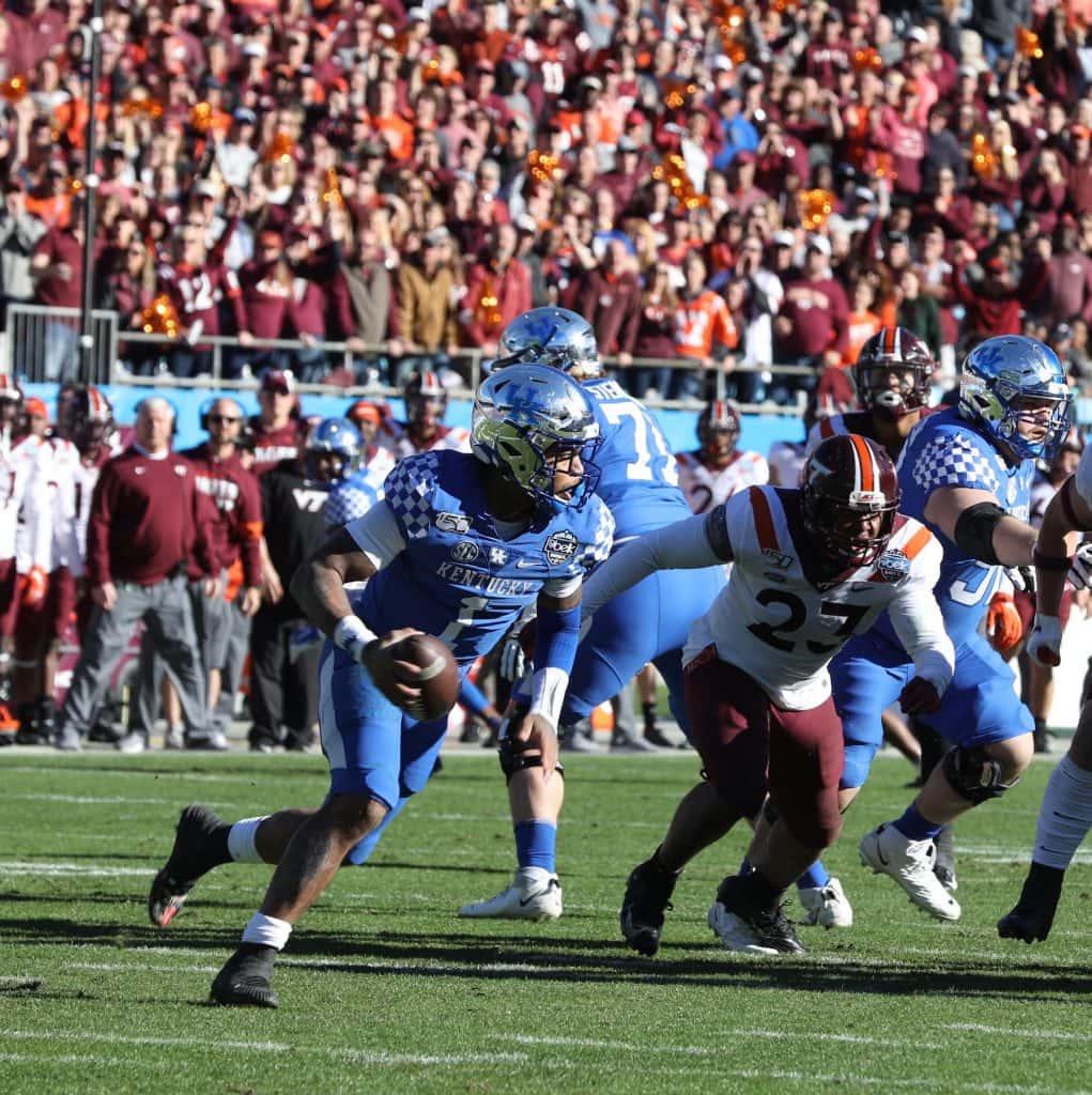 Kentucky scored two touchdowns in the final 15 seconds to grab a 37-30 win over Virginia Tech in the Belk Bowl Tuesday. Lynn Bowden set a bowl record with 233 rushing yards as a quarterback. Vicki Graff captured the action in the gallery for YourSportsEdge.com.