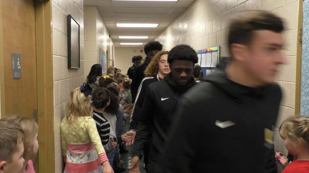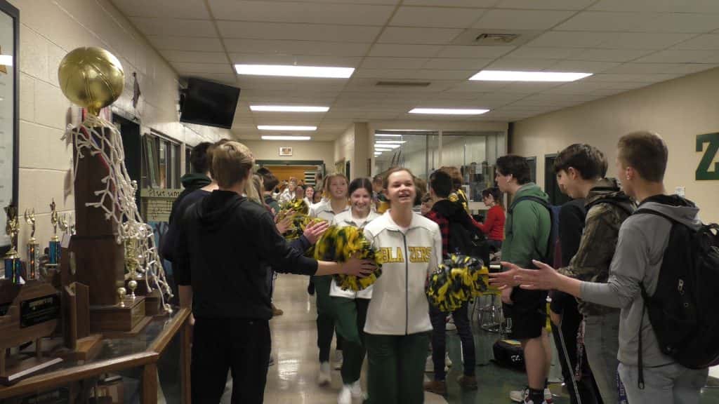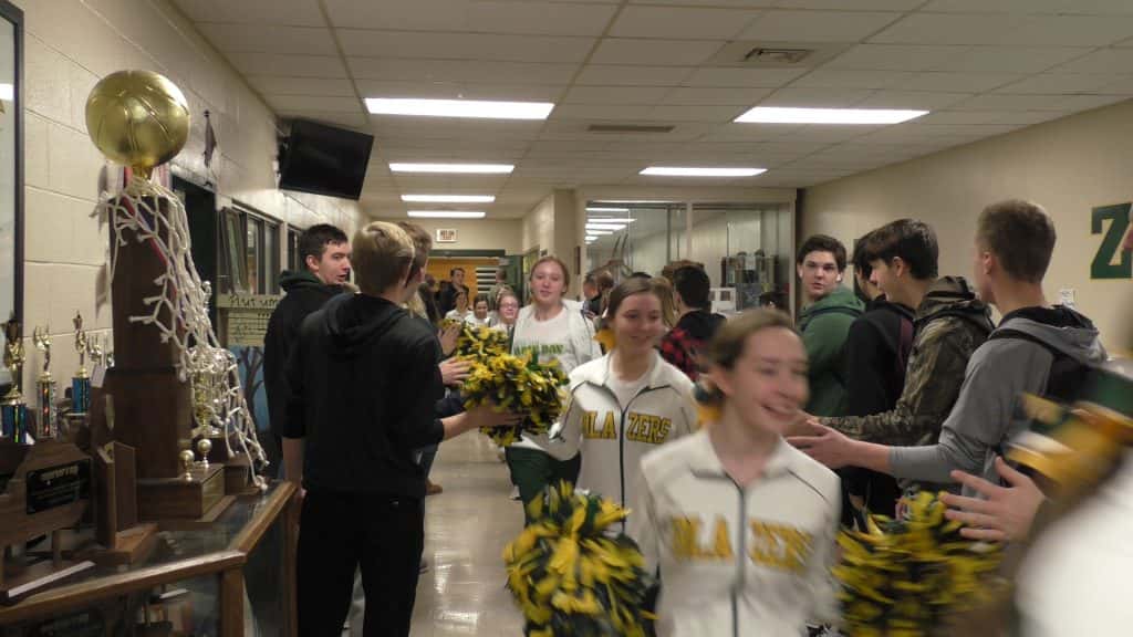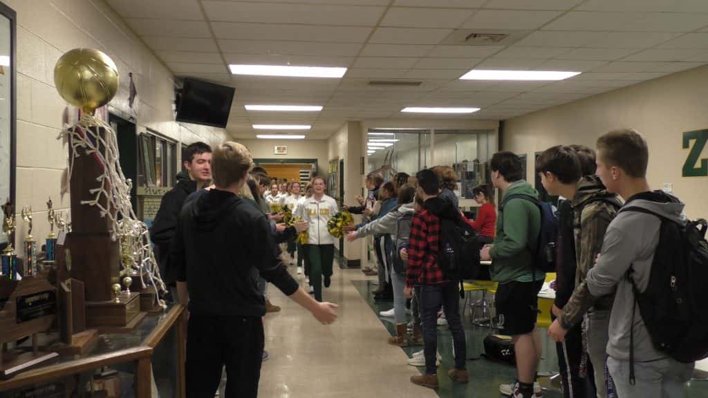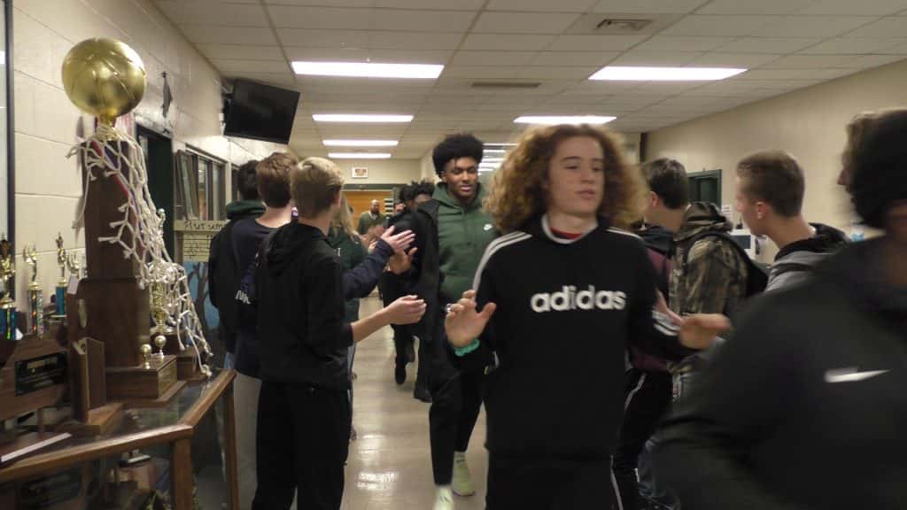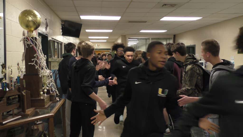 In what has become a tradition at University Heights Academy, the entire enrollment of the school packed the halls to send off a team headed to the state tournament. Today, it was the Blazer basketball team as they head to Richmond for the All-A Classic State Tournament.