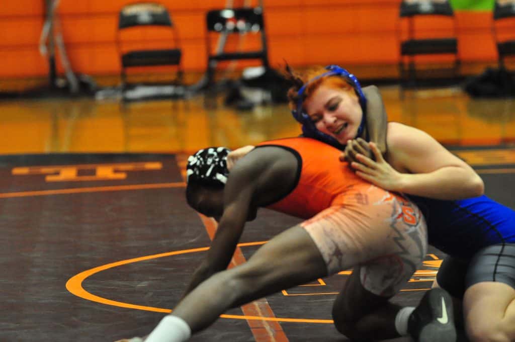 Fort Campbell took over 20 wrestlers to the City/County wrestling championships Wednesday at Tiger Gym. Here are some shots of the Falcon grapplers in action.