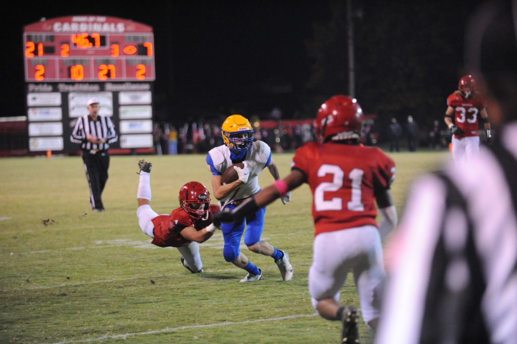 The homestanding Cardinals held on for a 21-20 triumph in a tight Class 2A 1st District contest.
