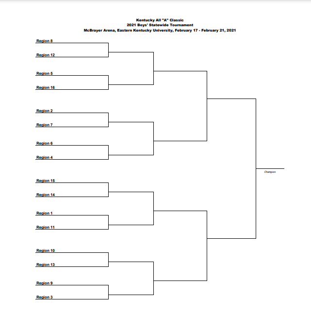 In addition to moving the tournament to February, the brackets have now been set for the 2021 Boys’ All A Classic State Tournament. The event is scheduled to take place February 17-21 in McBrayer Arena at Eastern Kentucky University.