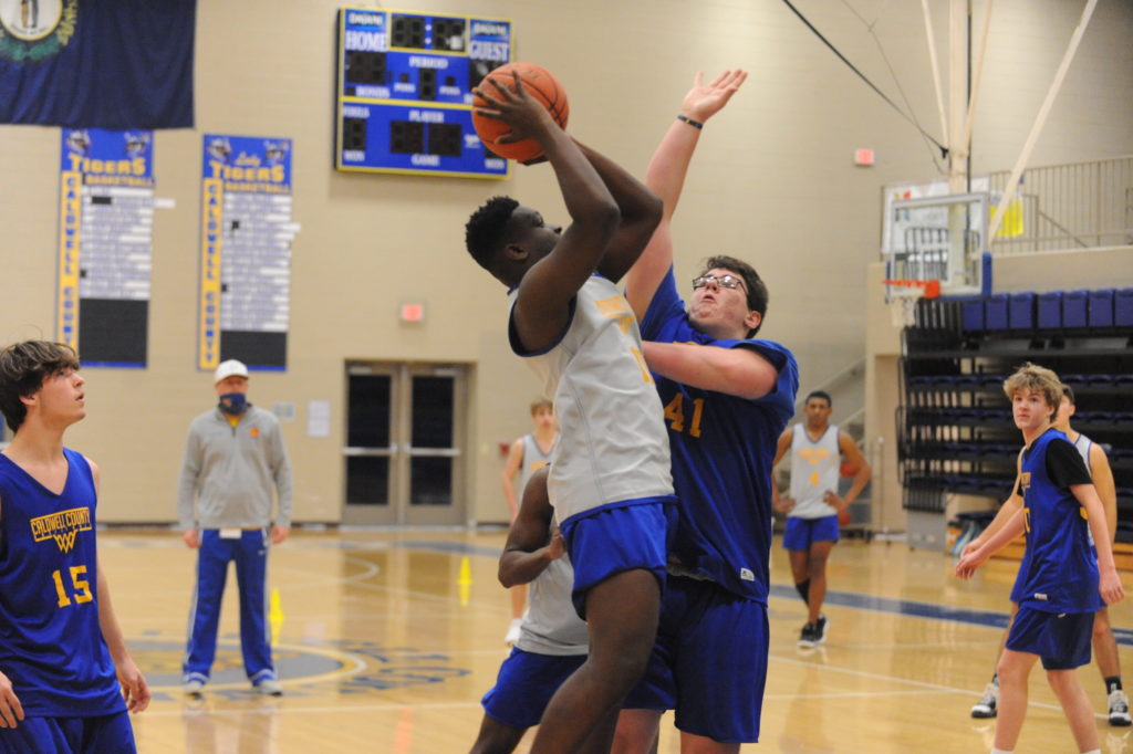 The Tigers were on the court Tuesday afternoon with a much larger contingent than earlier, with football players and others making for a more typical basketball practice situation.