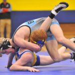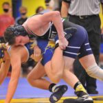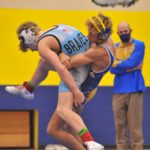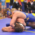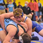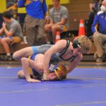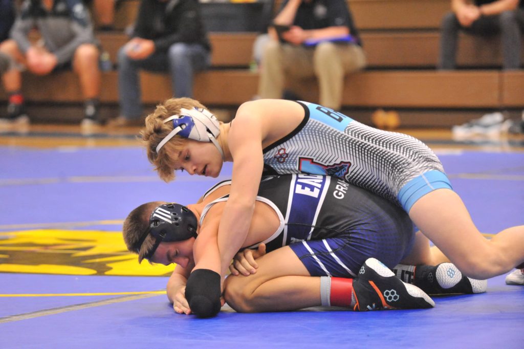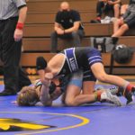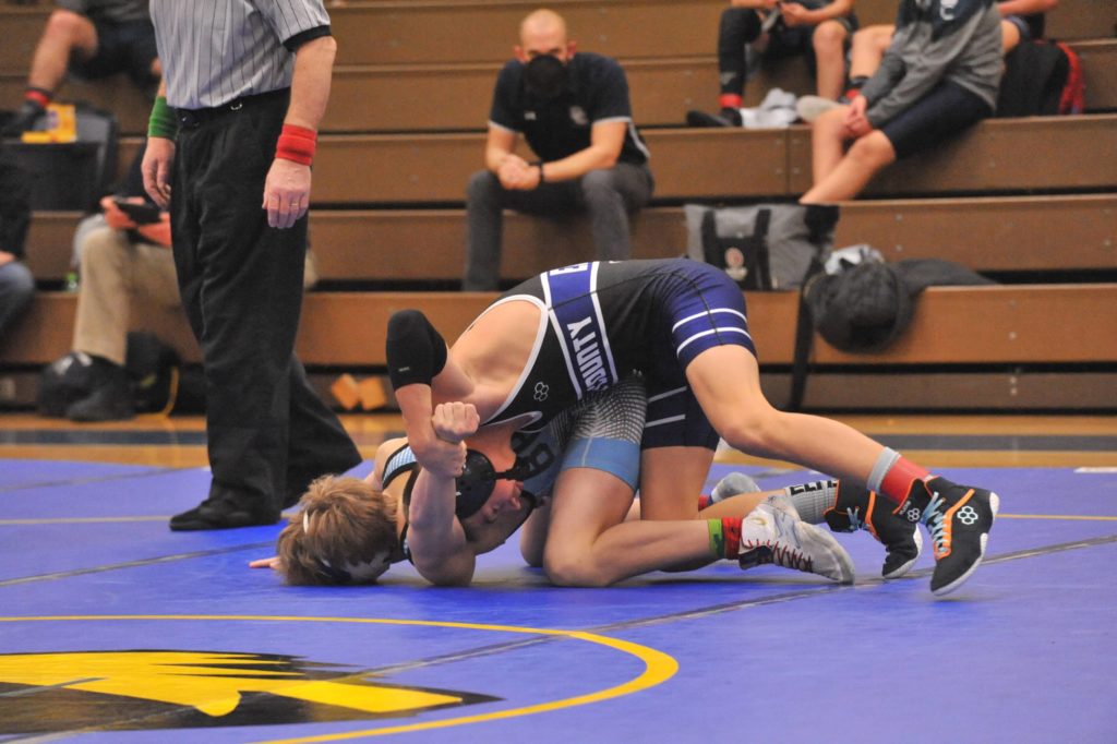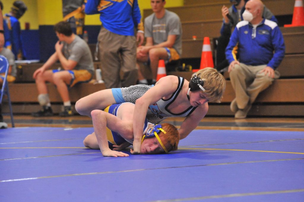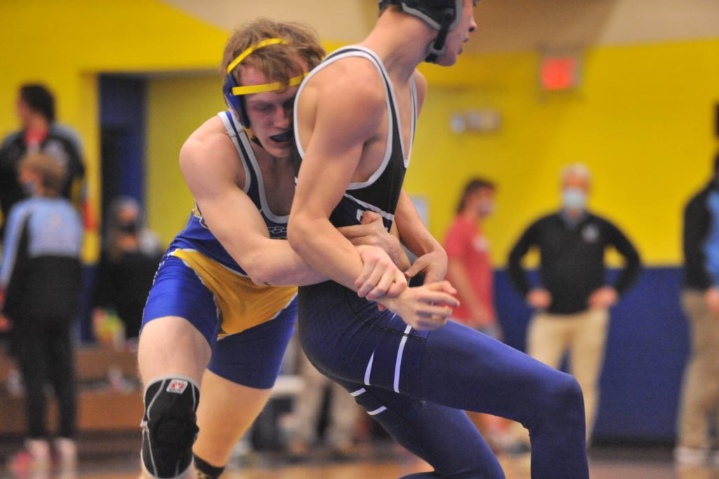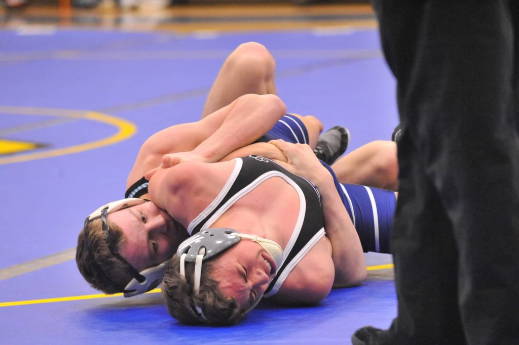 Caldwell's Riley Johnson wrestles Union County's Jake Dowdy at 145 pounds on Thursday.