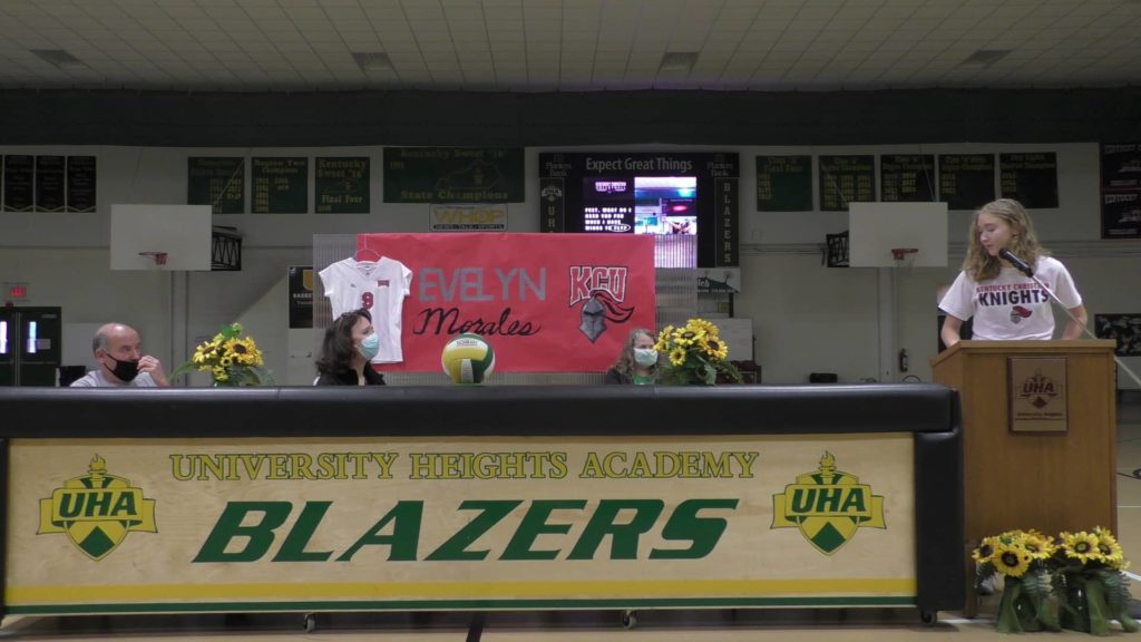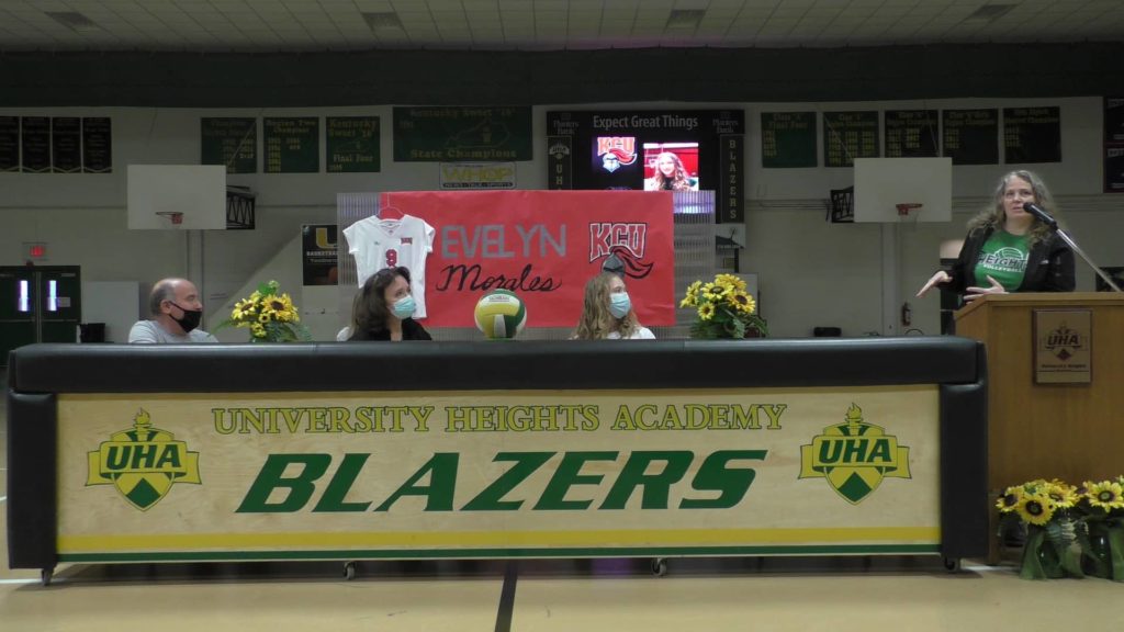 UHA senior Evelyn Morales became the fourth recent Lady Blazer volleyball player to move on to the college level when she signed on Friday to continue her career at Kentucky Christian University.
