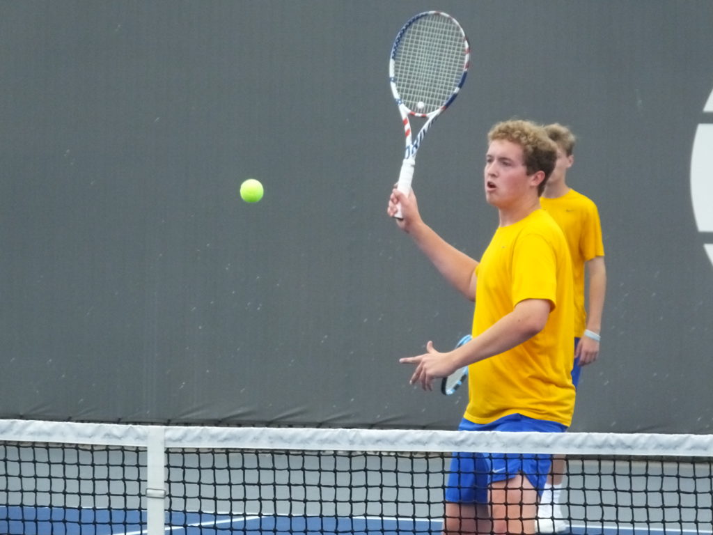 2nd Region doubles champions, Caldwell’s Jordan and Ryan Hammett, cruised to a first-round win in the KHSAA State Tennis Tournament at the Top Seed Tennis Club in Lexington on Tuesday, before a valiant effort fell short in the second round.