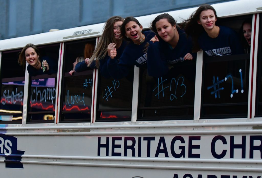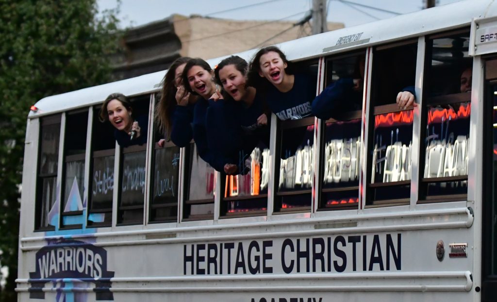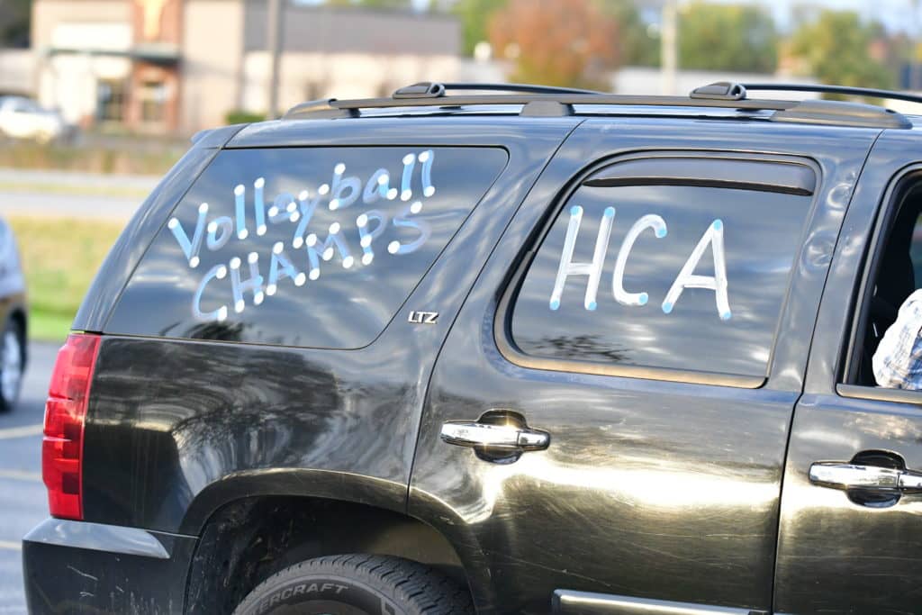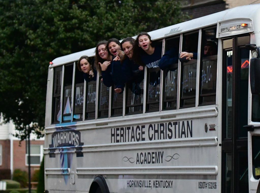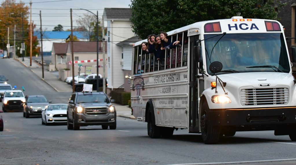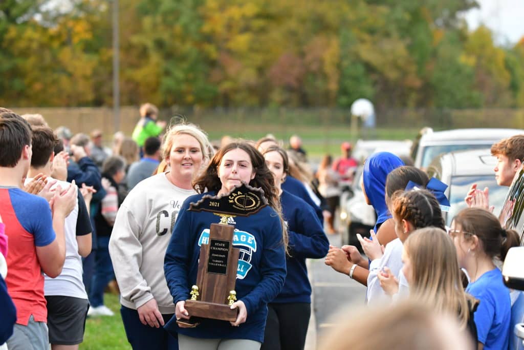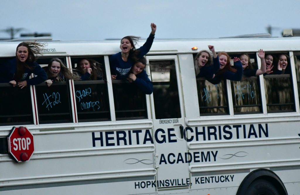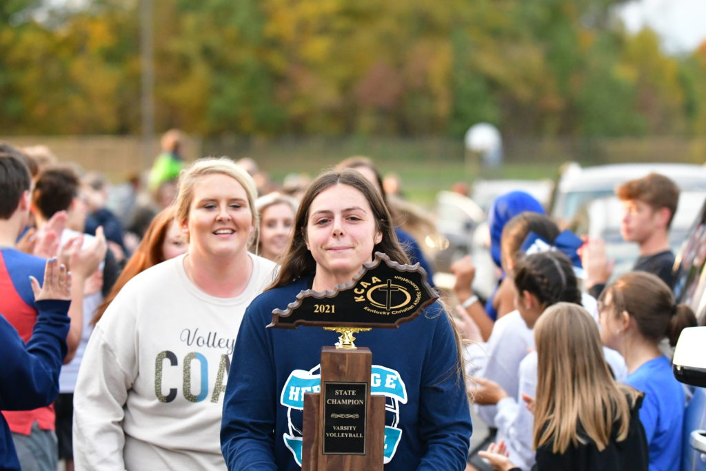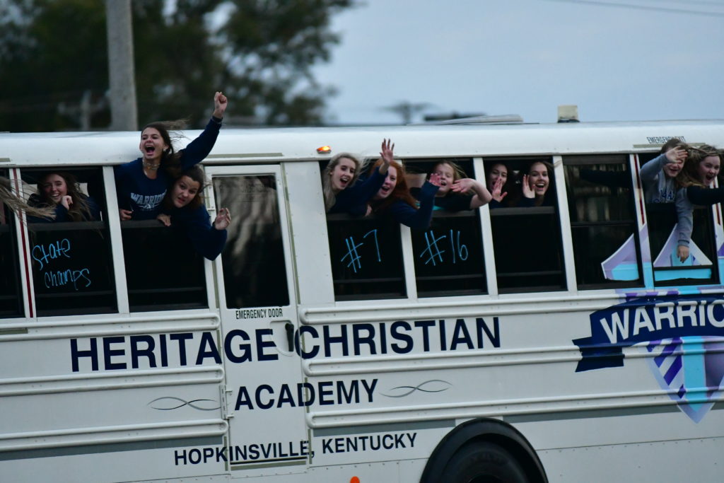 Heritage Christian Academy celebrated its KCAA state volleyball championship with a victory parade through the streets of Hopkinsville Monday.