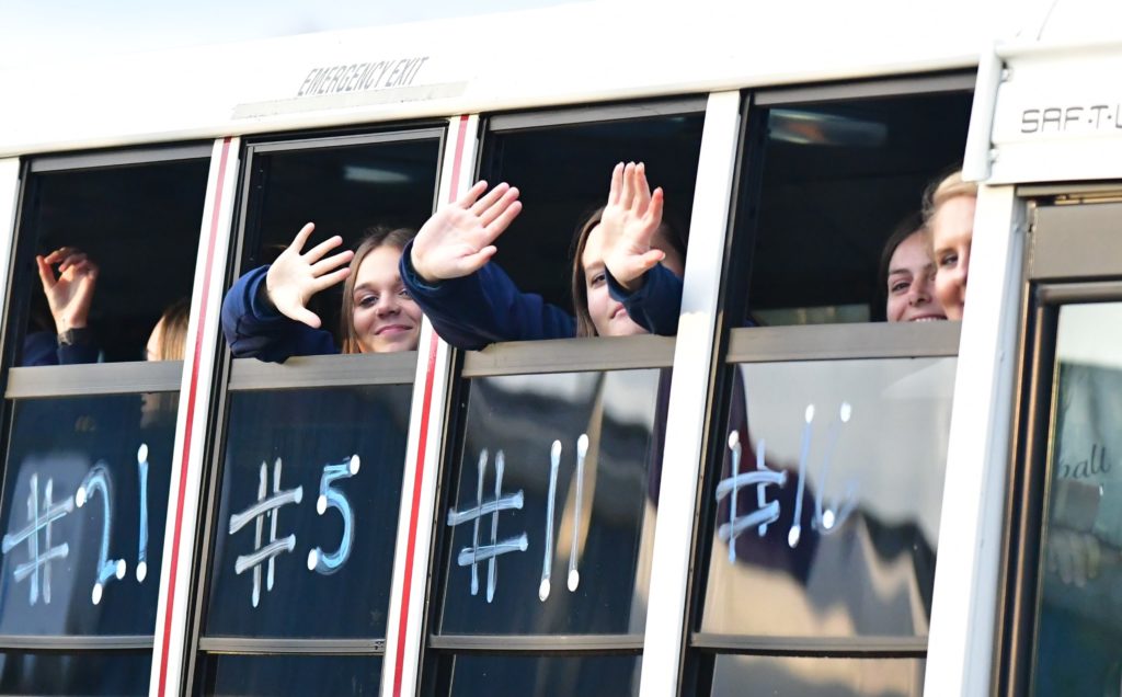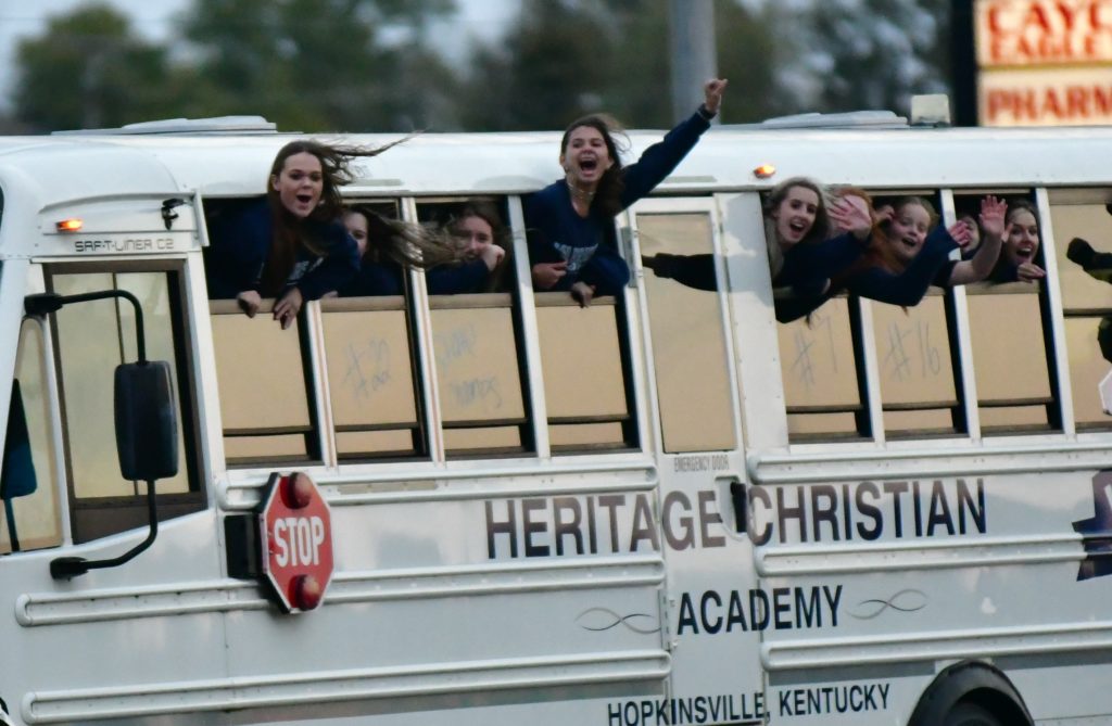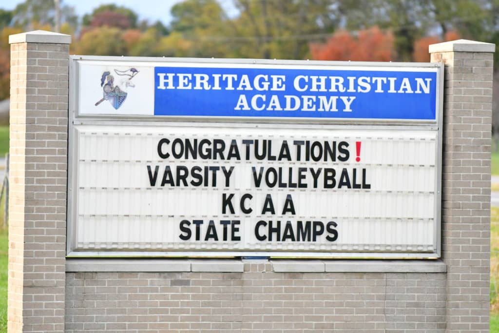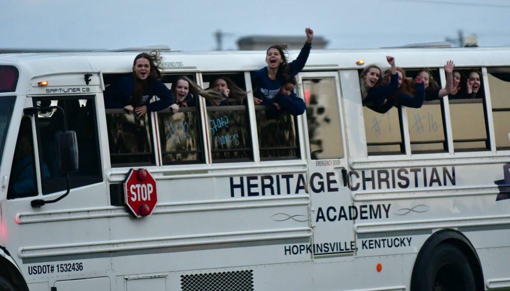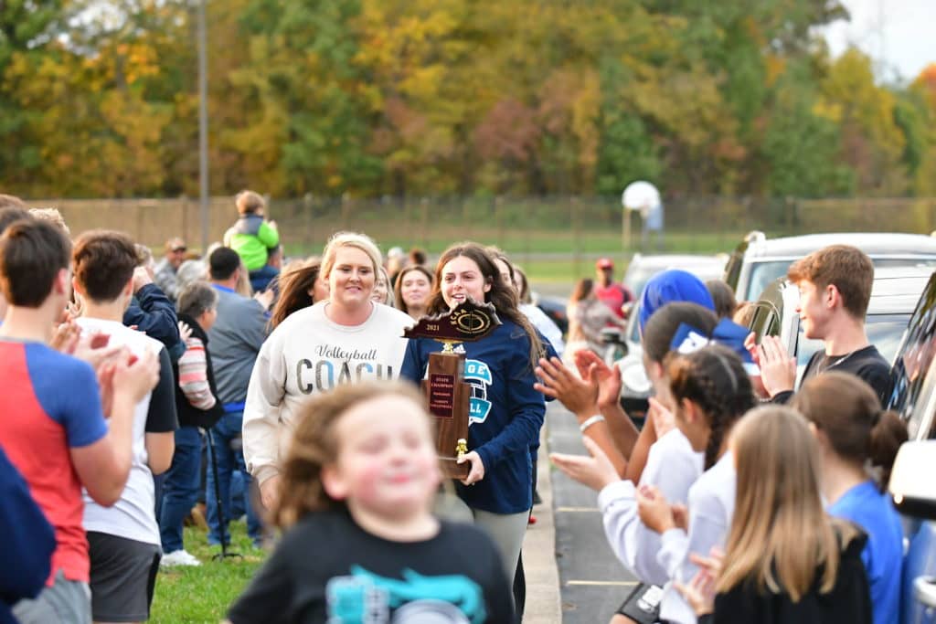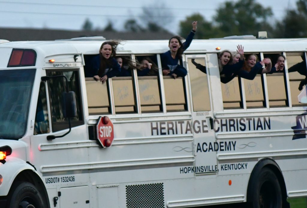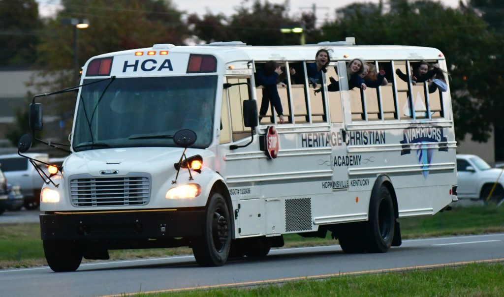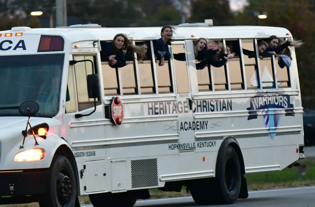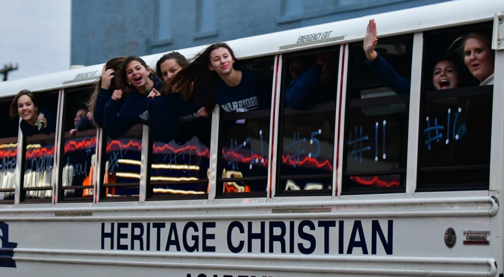 Heritage Christian Academy celebrated its KCAA state volleyball championship with a victory parade through the streets of Hopkinsville Monday.