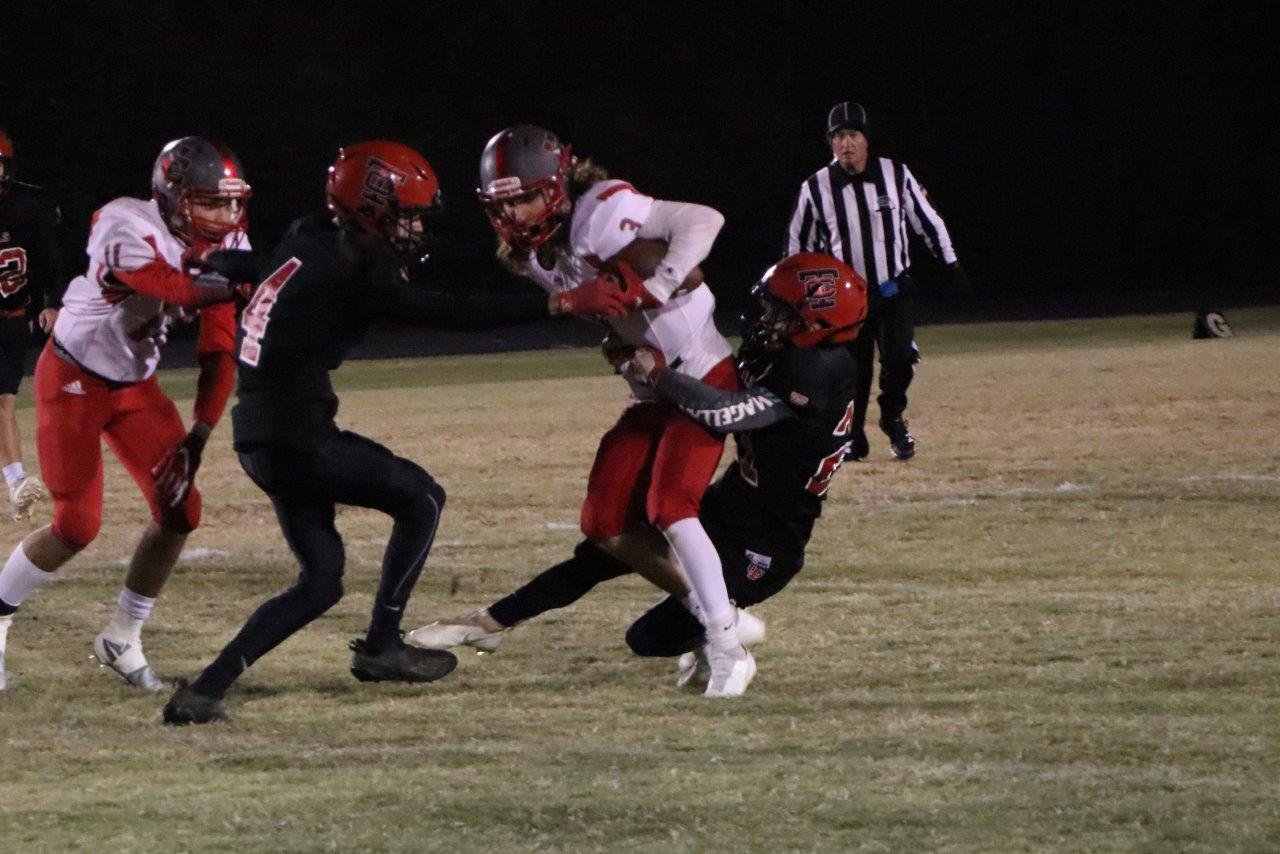 Gavyn Nolan completed five passes on the final drive and picked up a key gain on the ground as the Rebels worked their way down the field to inside the Hornet 20 yard line before Hancock County came up with the big defensive play to close out the win.