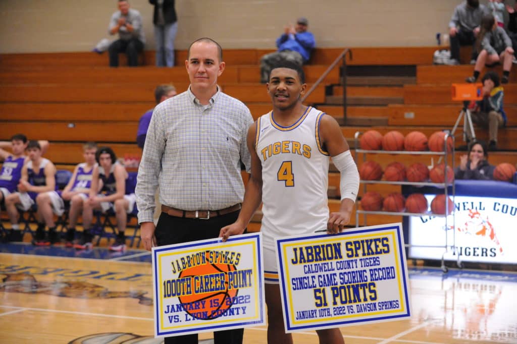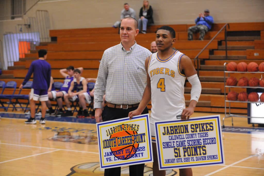 Caldwell County High School recognized a pair of scoring marks by Jabrion Spikes prior to Friday’s home date against Dawson Springs.