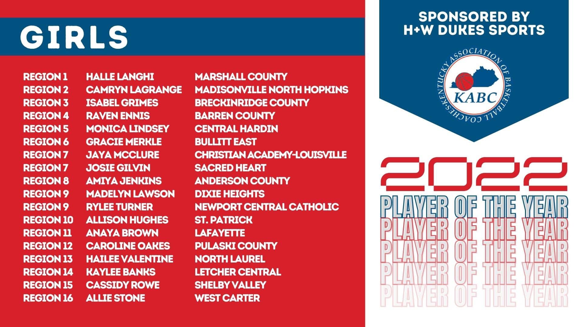 The Kentucky Lions Eye Foundation and the KABC announced their top region players and candidates for Kentucky’s 2022 Mr. and Miss Basketball awards Friday morning.
