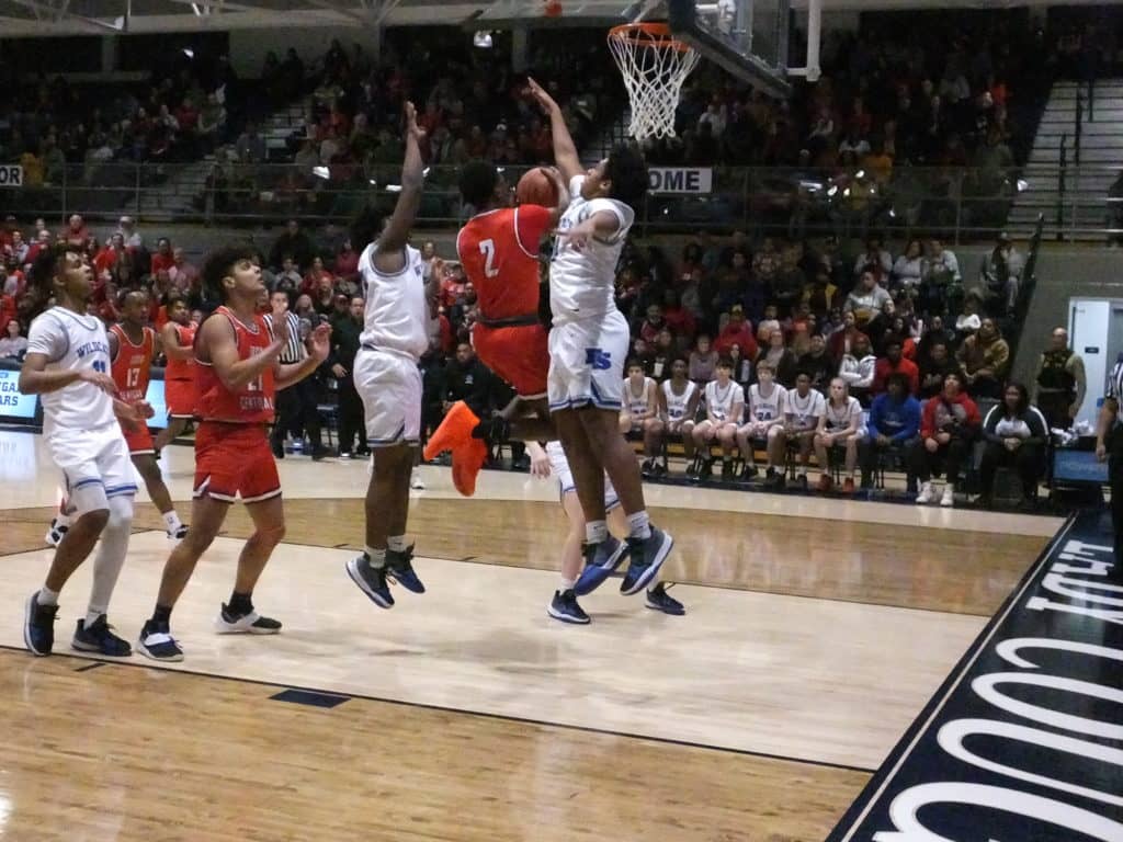 Todd Central opened the 2nd half on an 11-2 run to take a 28-22 lead after Perez Whitlock connected on a 3-pointer with 3:31 to play in the 3rd. But the Rebels didn’t score again until Jamison Glass’ bucket in the lane with :12 left, and Franklin-Simpson closed on a 9-2 spurt to take a 1-point advantage.
