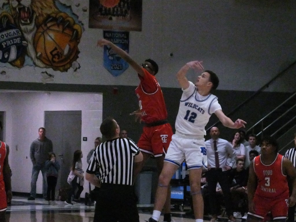 Mareke Johnson scored on a layup and knocked down a 3 from the corner to pull Todd Central within a point at 18-17. However, Ishmael Holcomb scored on a pull-up jumper to give Franklin-Simpson a three-point halftime edge.