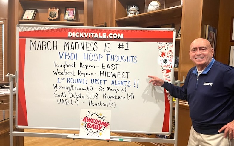 ESPN college basketball analyst Dick Vitale listed the East Region with Kentucky, Baylor, Purdue and UCLA as the nation’s toughest region with the Midwest Region with Kansas the top seed as the weakest region.