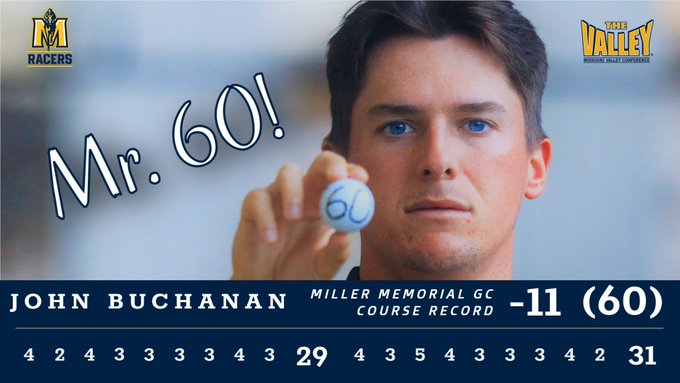 However, this time Buchanan’s round was a historic one that Miller Memorial Golf Course in Murray, Kentucky, hasn’t seen in 15 years. A senior from Hopkinsville, Ky., he carded an 11-under-par 60 which topped the former course record of 61, set by Mark Brant during an MSU team qualifying round in 2007.