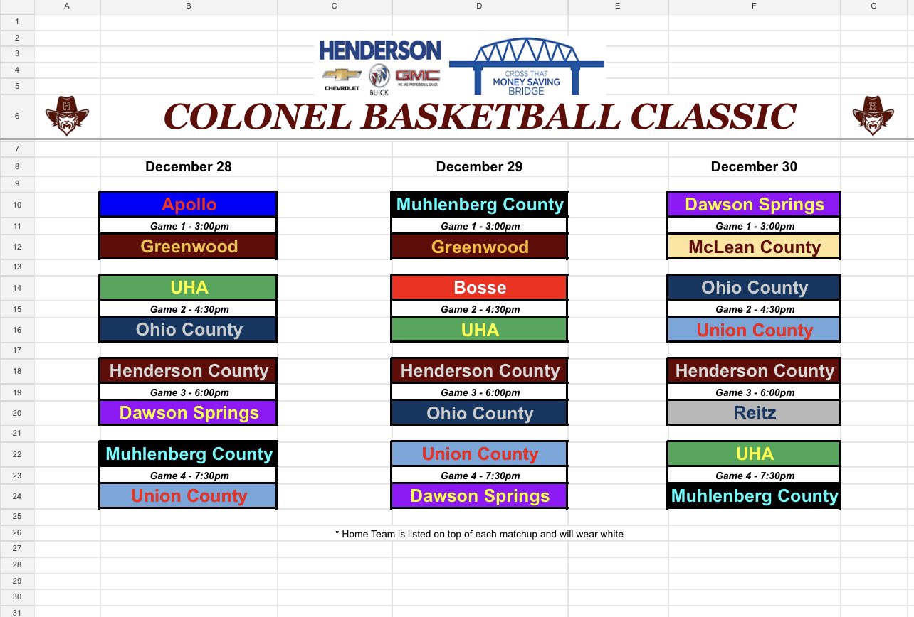 UHA (4-4) will play Ohio County (9-2) Wednesday at 4:30 in the Henderson Chevrolet Buick GMC Classic at Henderson County High School.