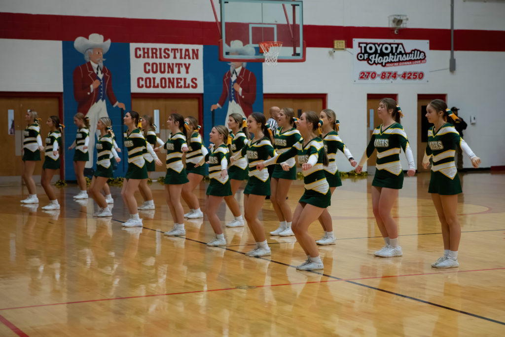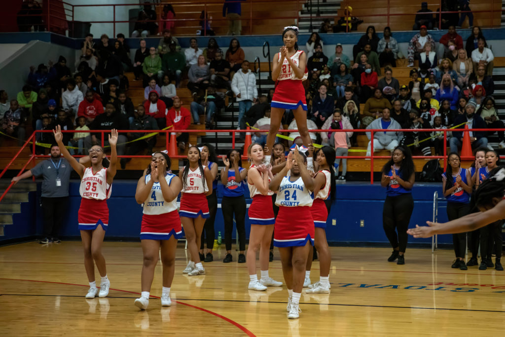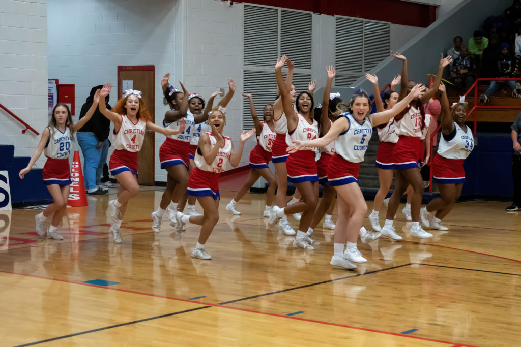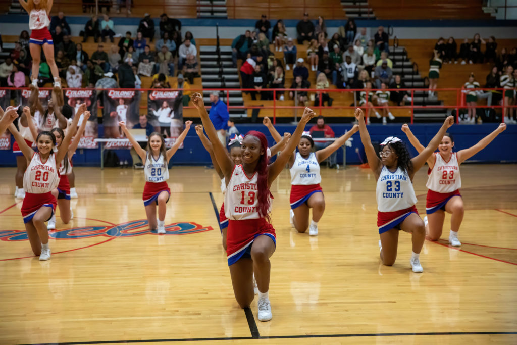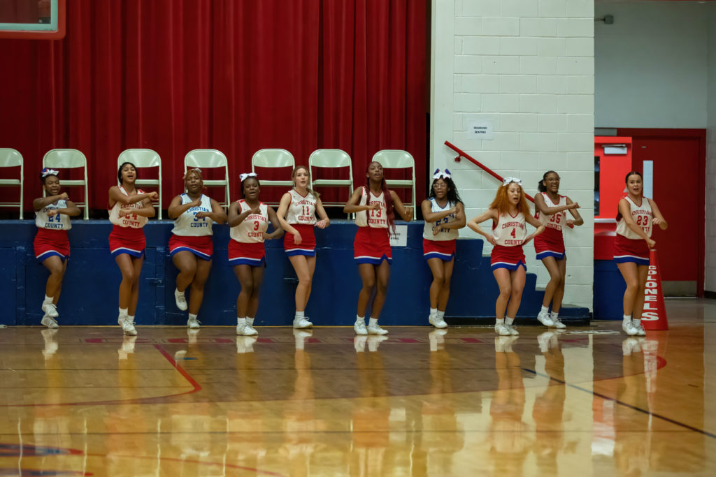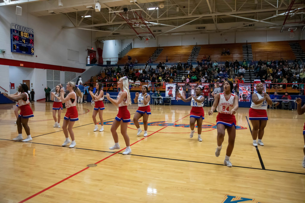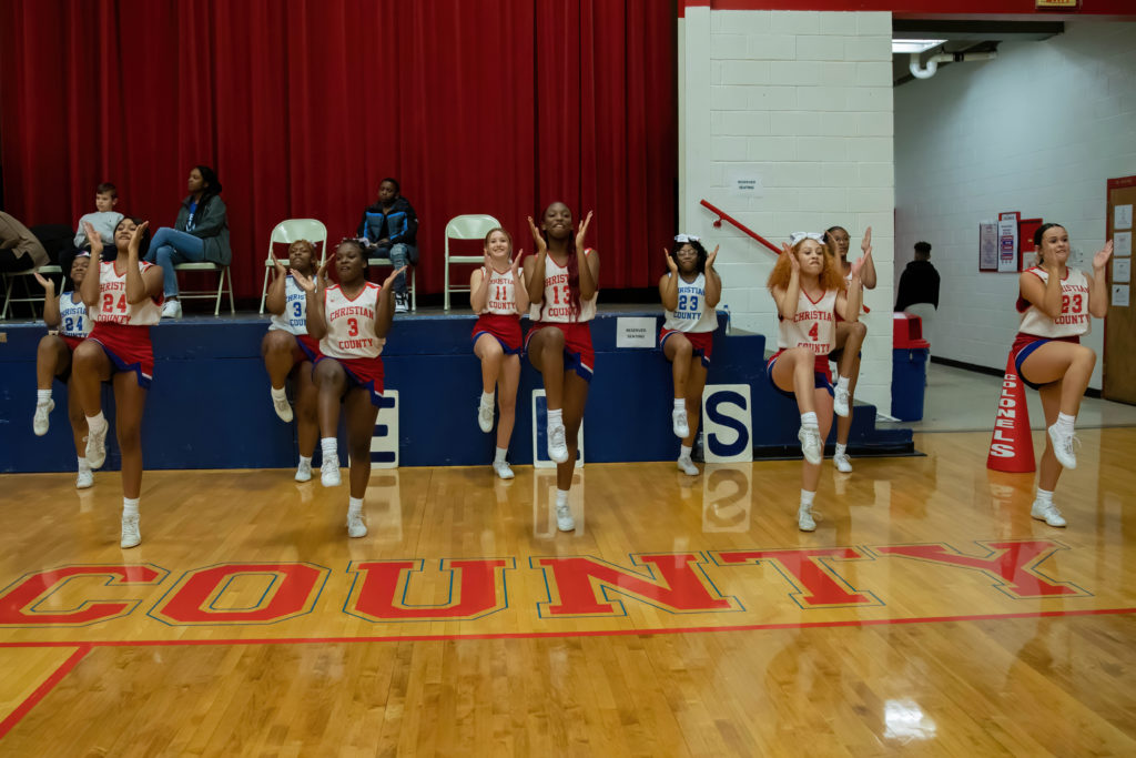 The cheerleaders from Christian County and University Heights Academy were every bit as busy as the players on the court during their North Drive Showdown Friday.