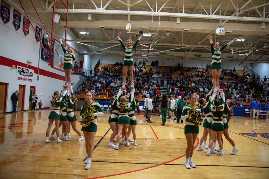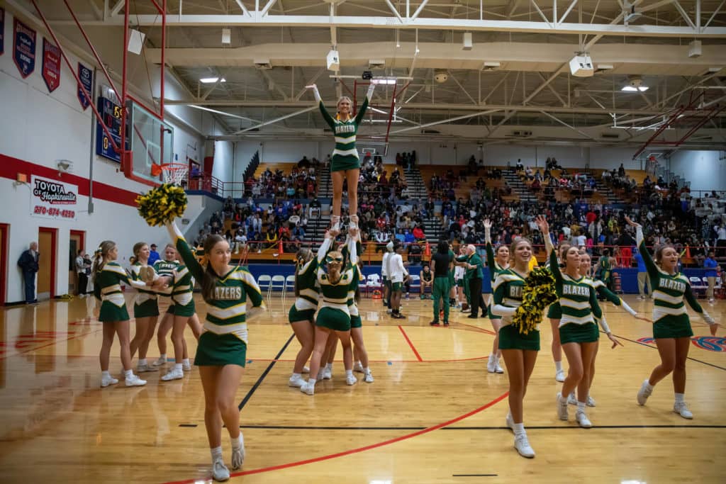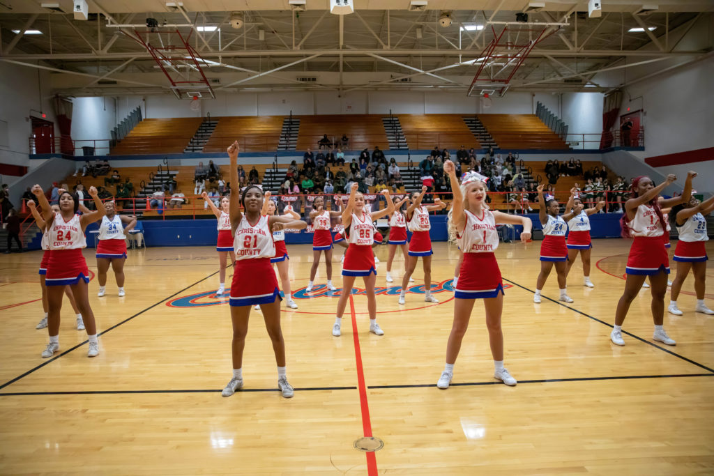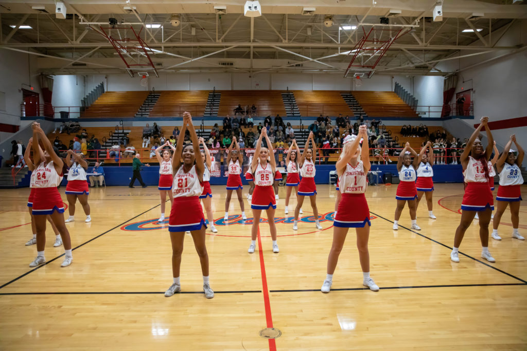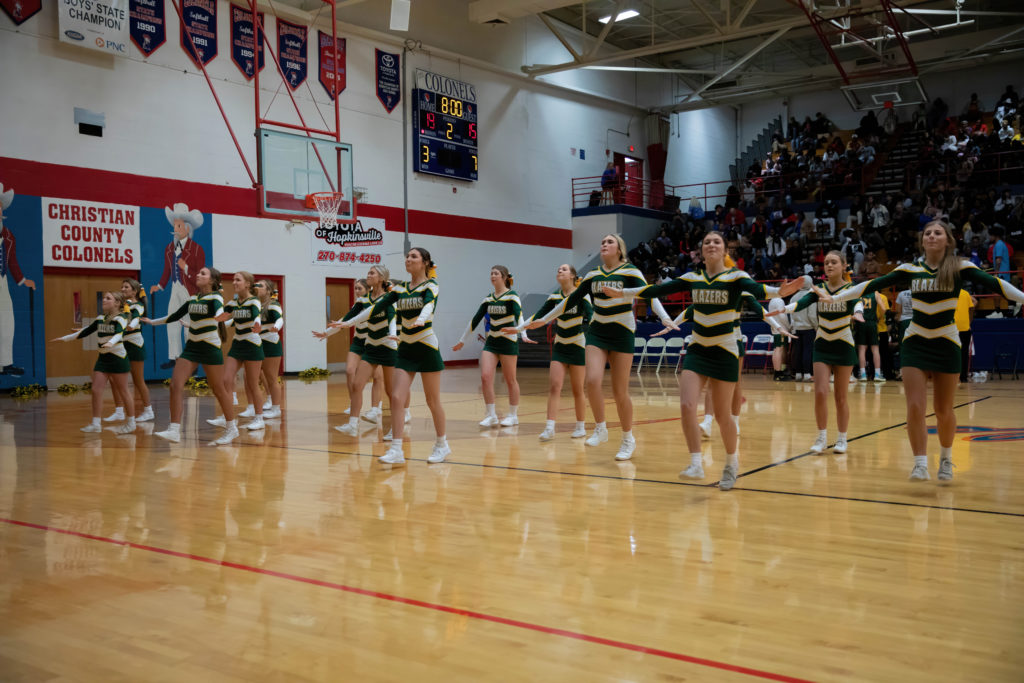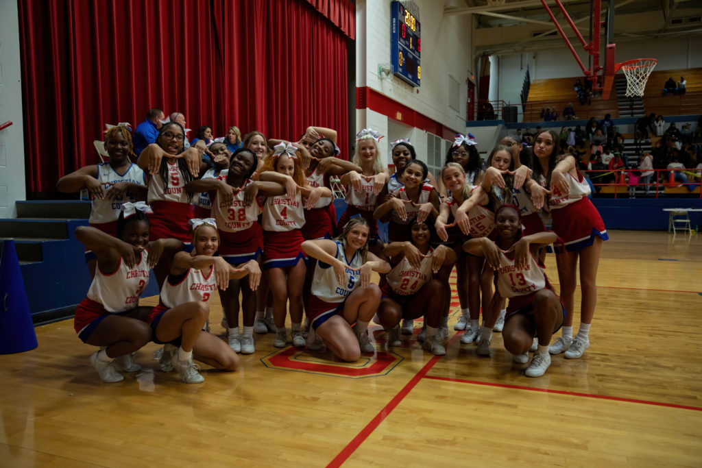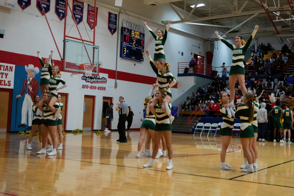 The cheerleaders from Christian County and University Heights Academy were every bit as busy as the players on the court during their North Drive Showdown Friday.