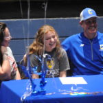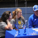 Laney Jones signs with Midway alongside her mother Wendi Melton and Caldwell coaches Tyler Beshear and Seath Butts.