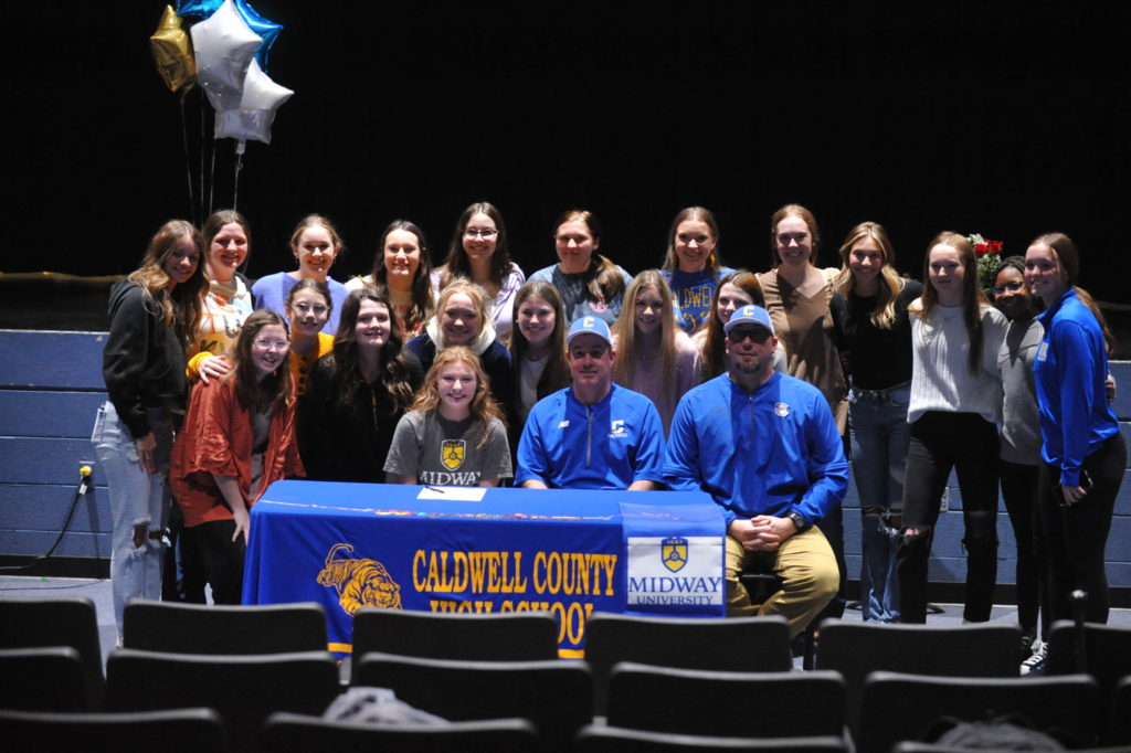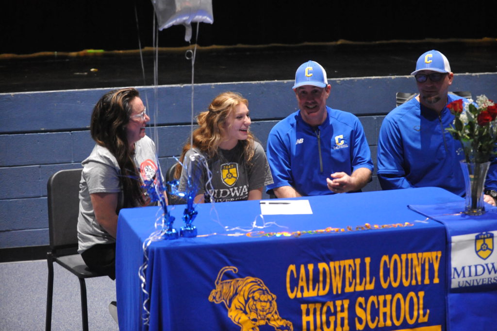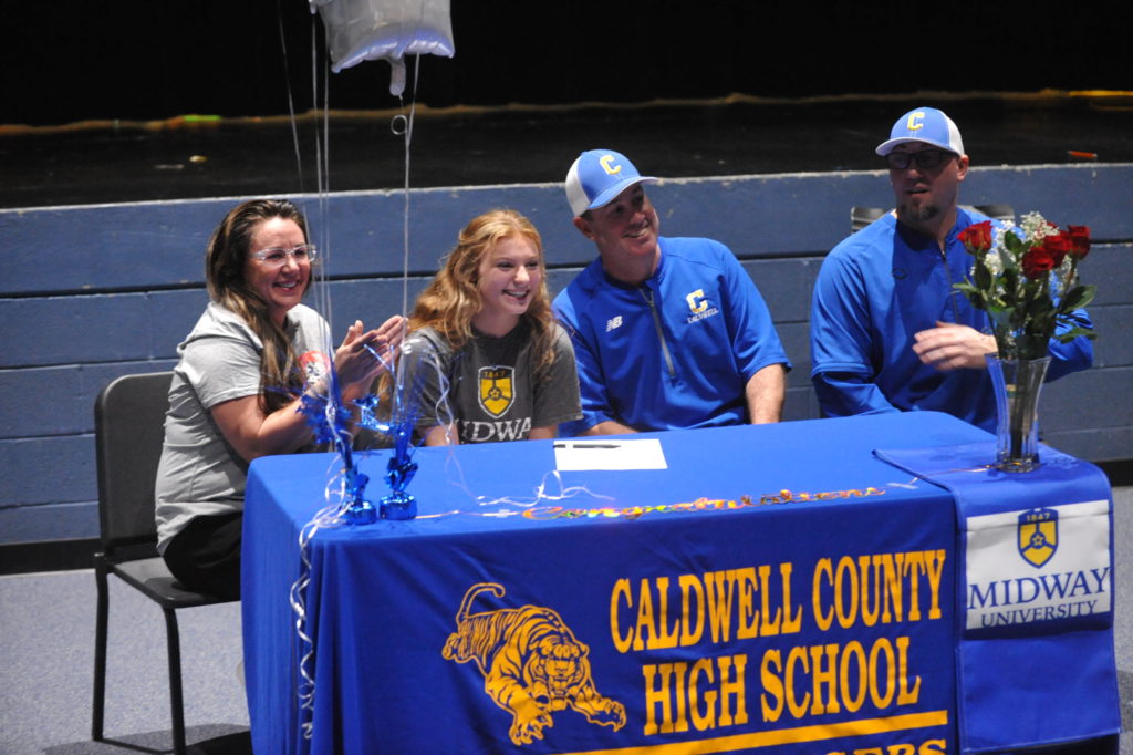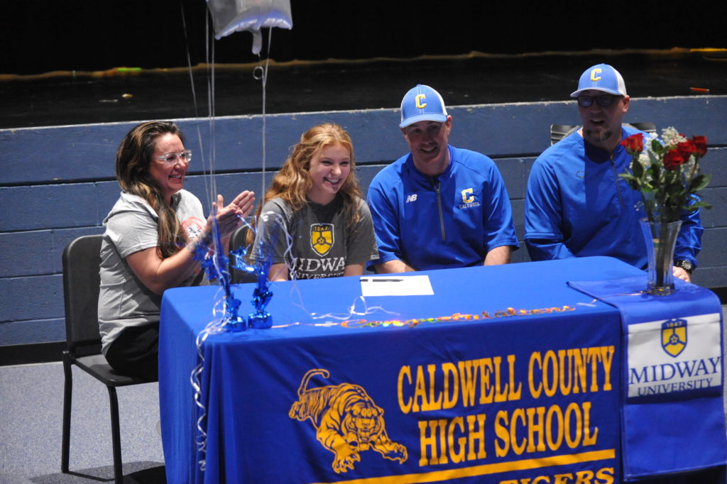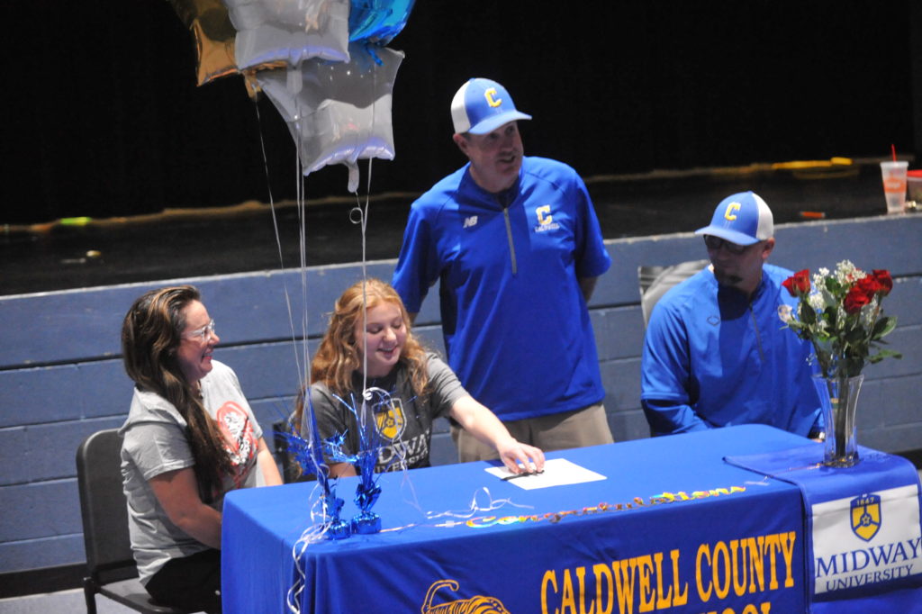 Laney Jones signed with Midway University in a ceremony Wednesday afternoon in front of family and Lady Tiger teammates in the Fine Arts Theatre at Caldwell County High School.