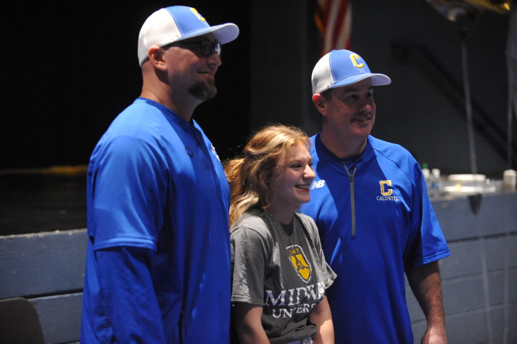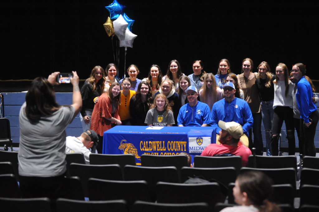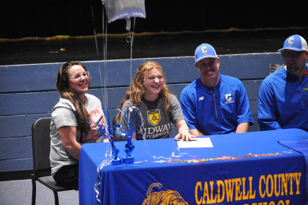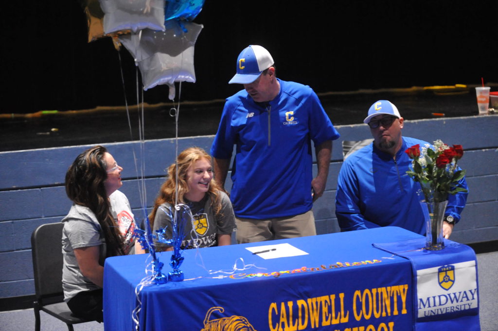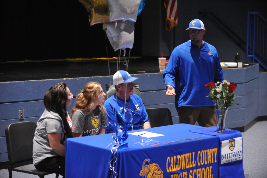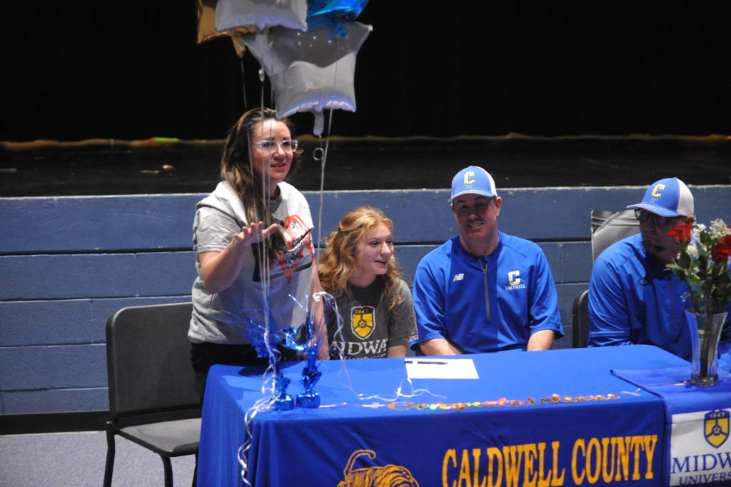 Laney Jones signed with Midway University in a ceremony Wednesday afternoon in front of family and Lady Tiger teammates in the Fine Arts Theatre at Caldwell County High School.
