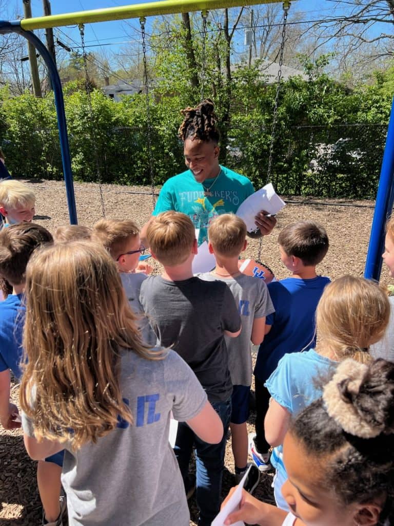 It was hard for Dan Koett to tell who was having the most fun Wednesday when former Kentucky all-Southeastern Conference running back visited with students participating in the YMCA of Central Kentucky’s After School Program at Maxwell Elementary School in Lexington.