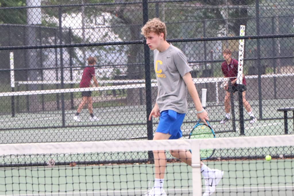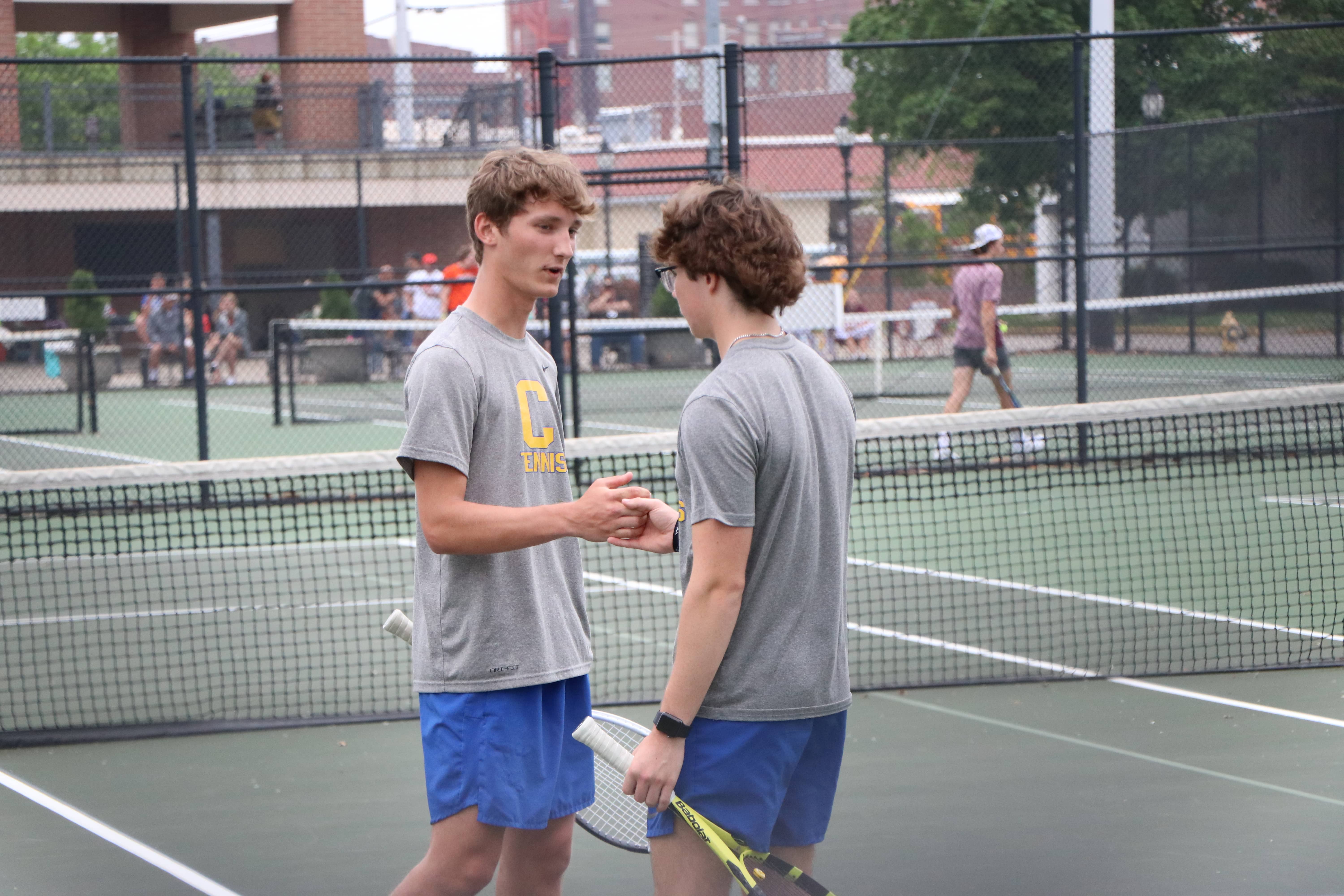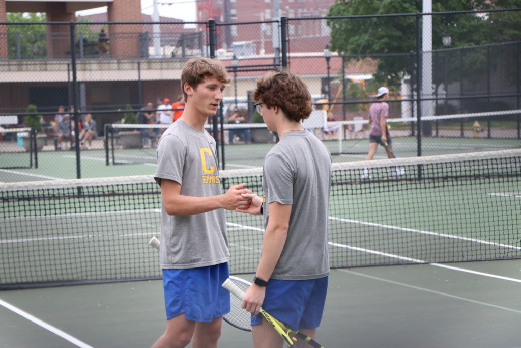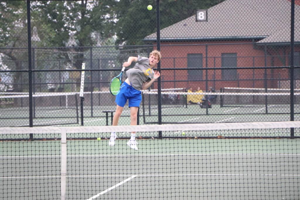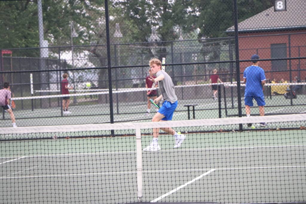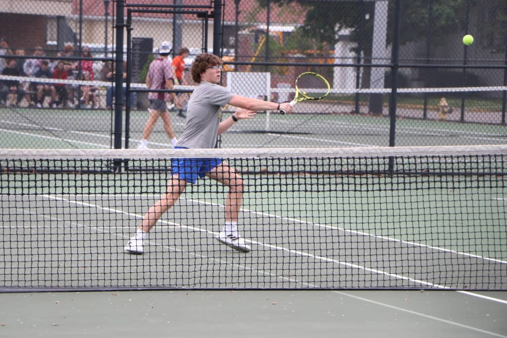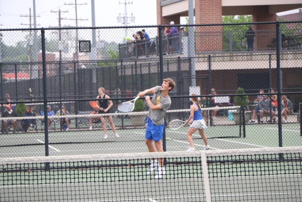 In doubles play, Grayden Miller and Nick Adams are in the regional doubles semifinals and headed on to the state tournament. Miller and Adams won their opening match 6-2, 7-5 and then moved on to the semis with with a 6-0, 6-2 win over the Hopkins Central pair of Byrum and Mackey.