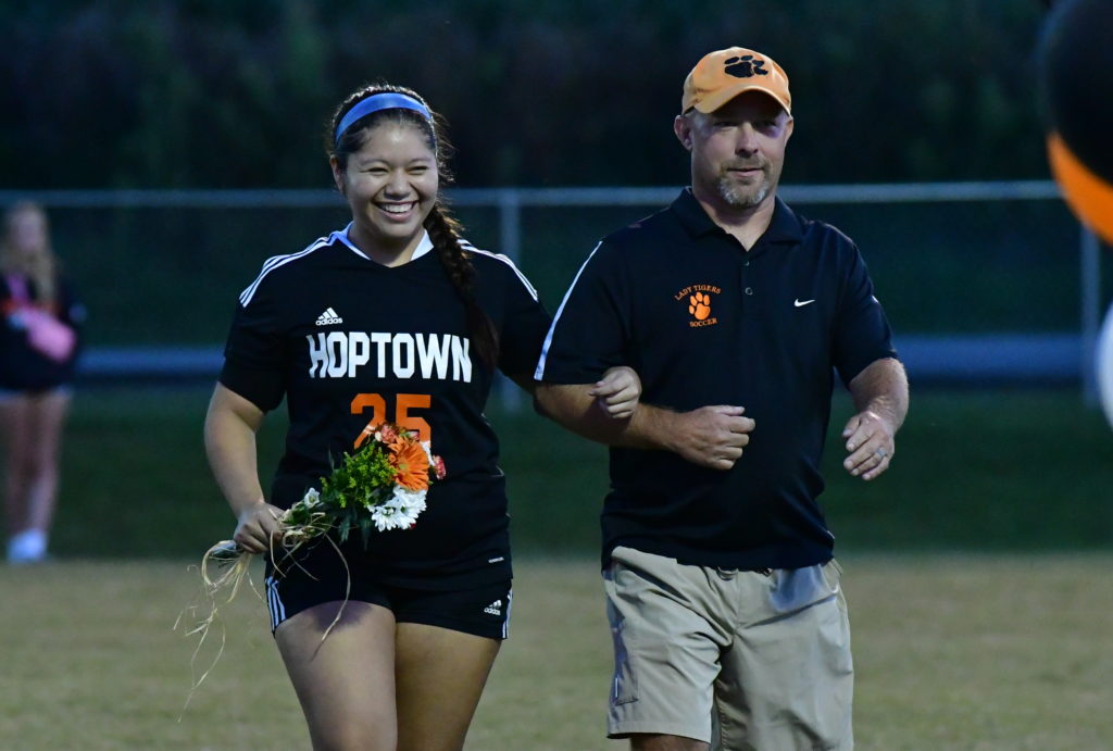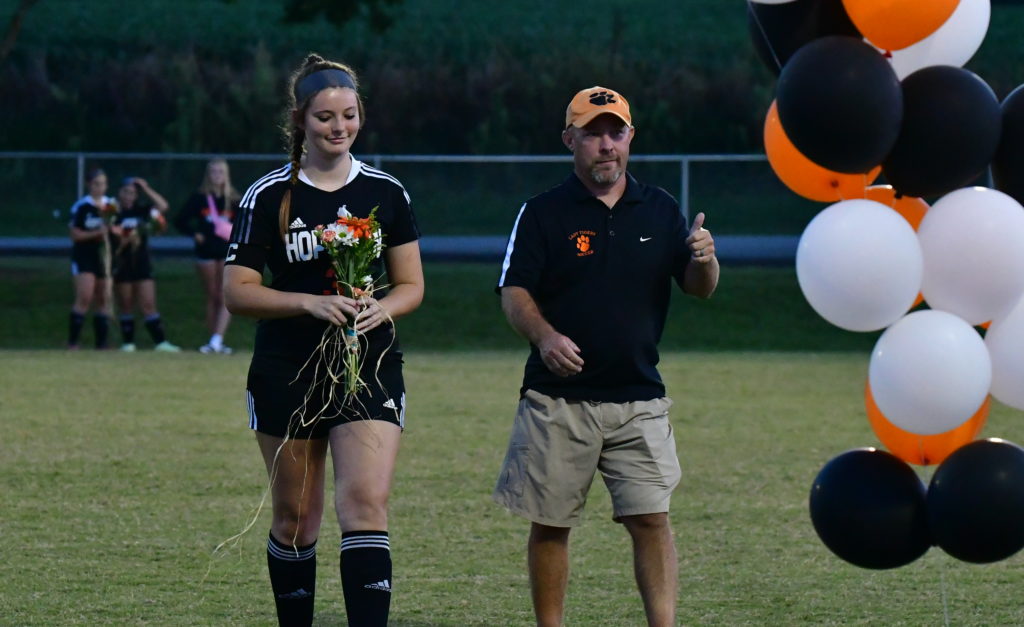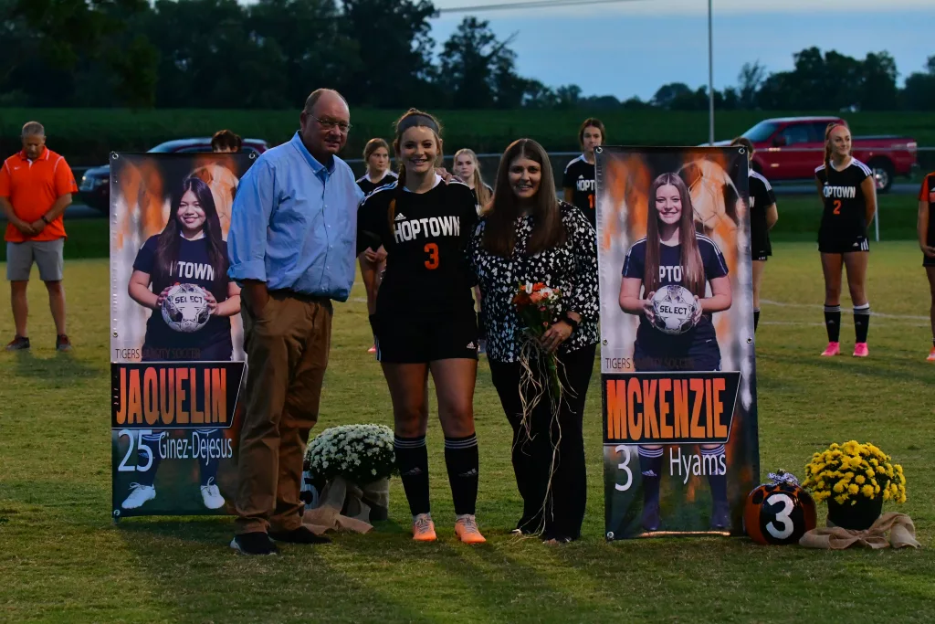 The Hopkinsville Lady Tigers celebrated its three seniors — Kendall Mayes, McKenzie Hyams, and Jaquelin Ginez-Dejesus — during Senior Night recognition at the Stadium of Champions.