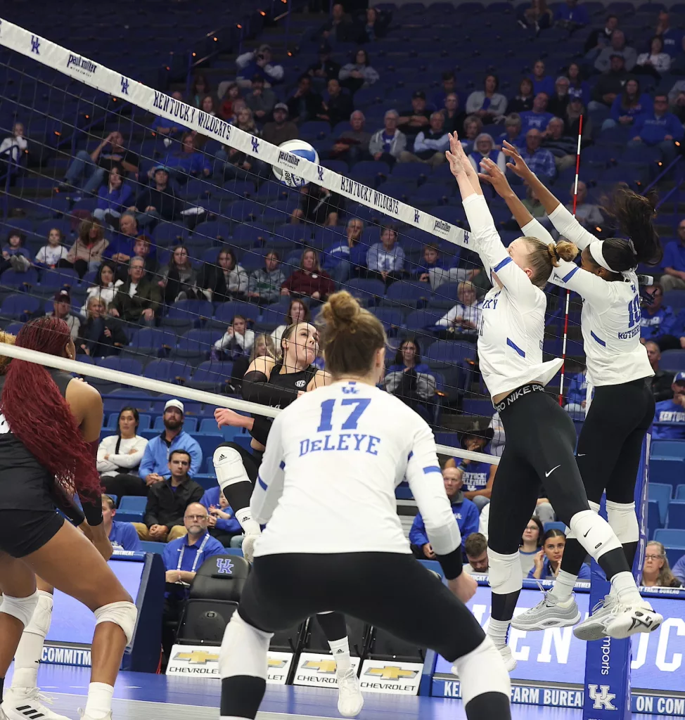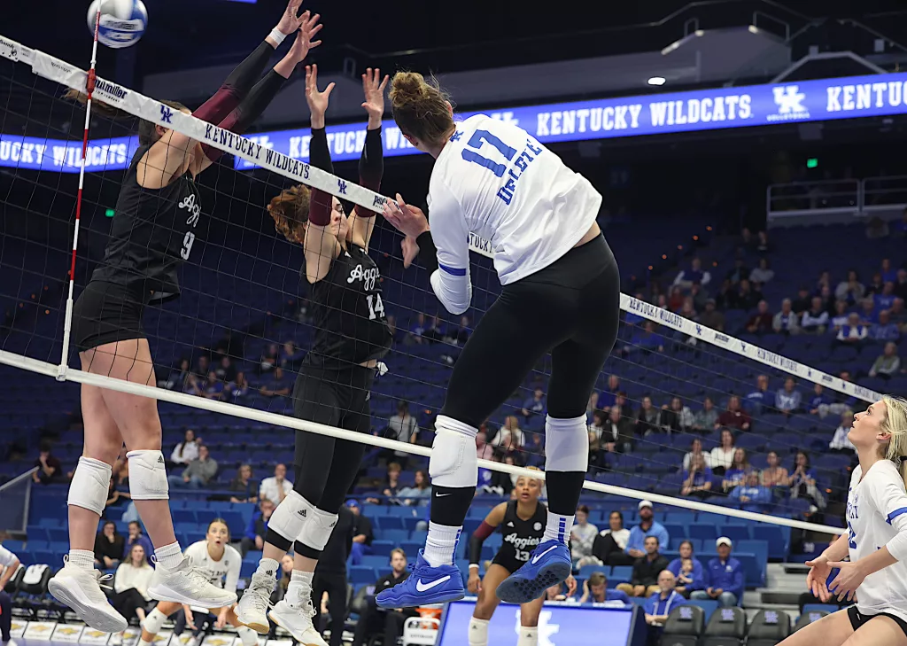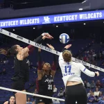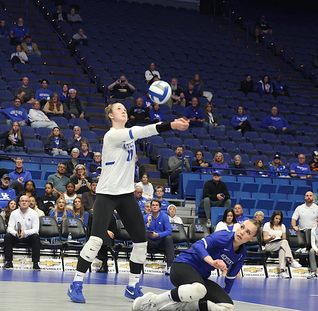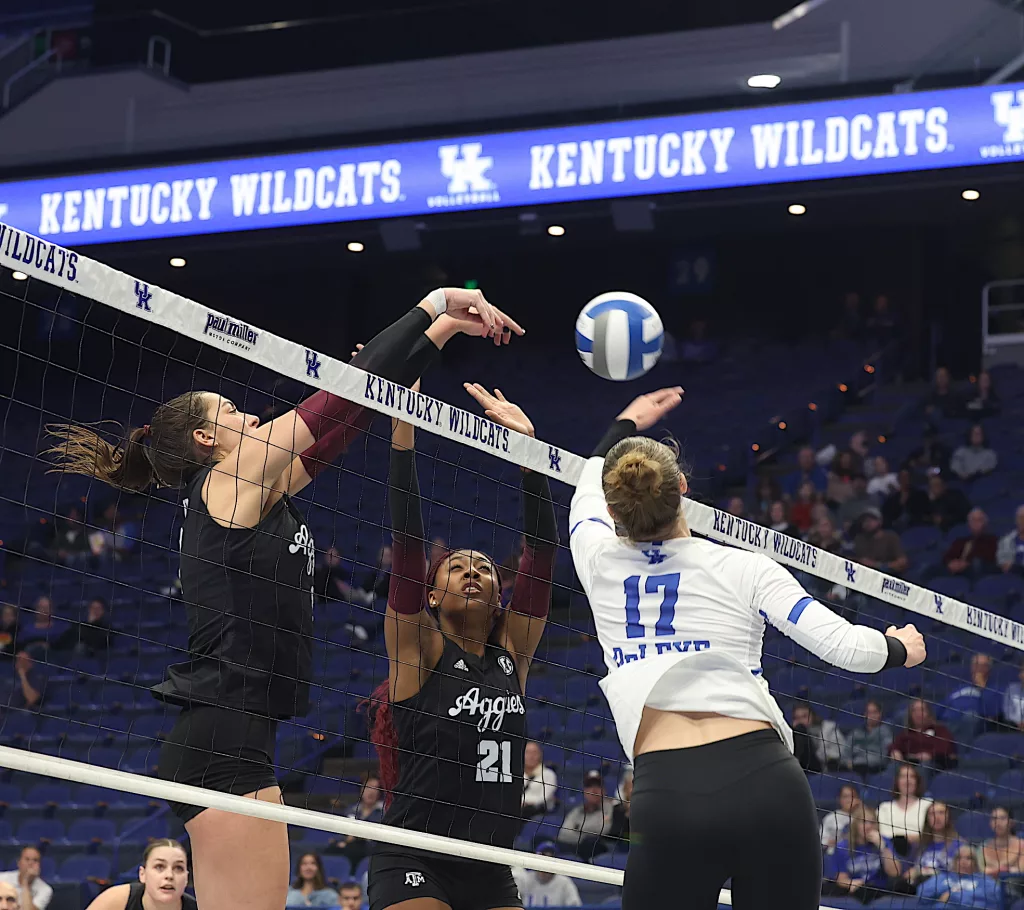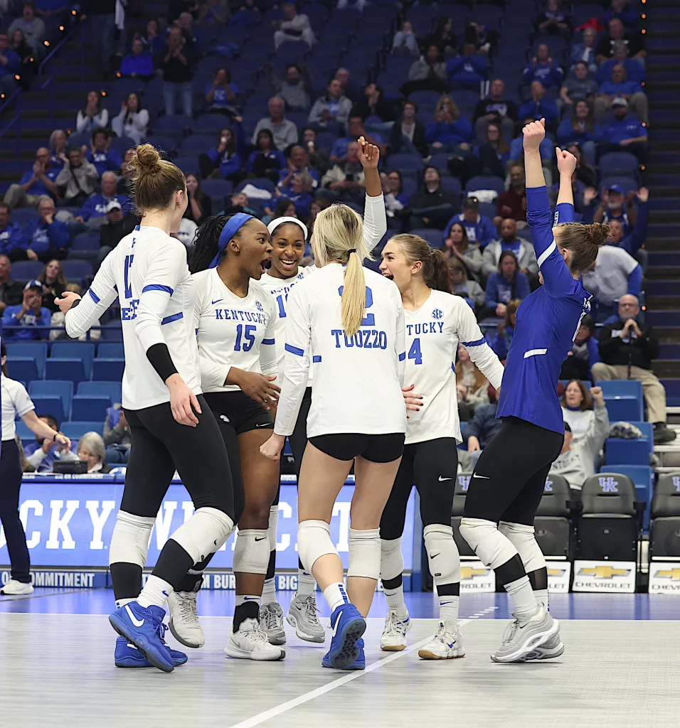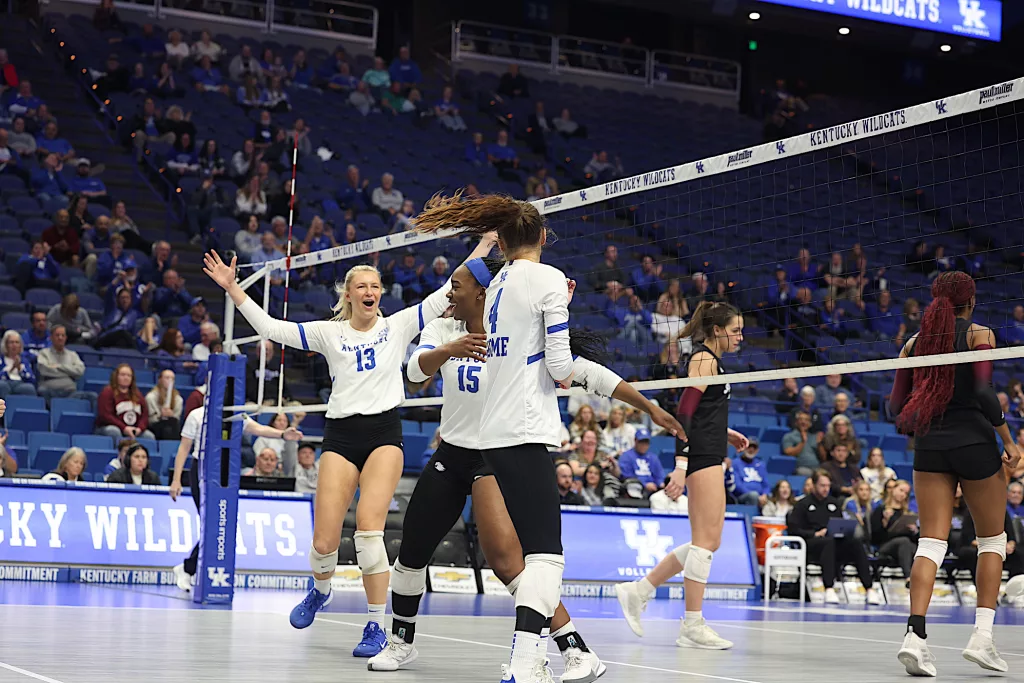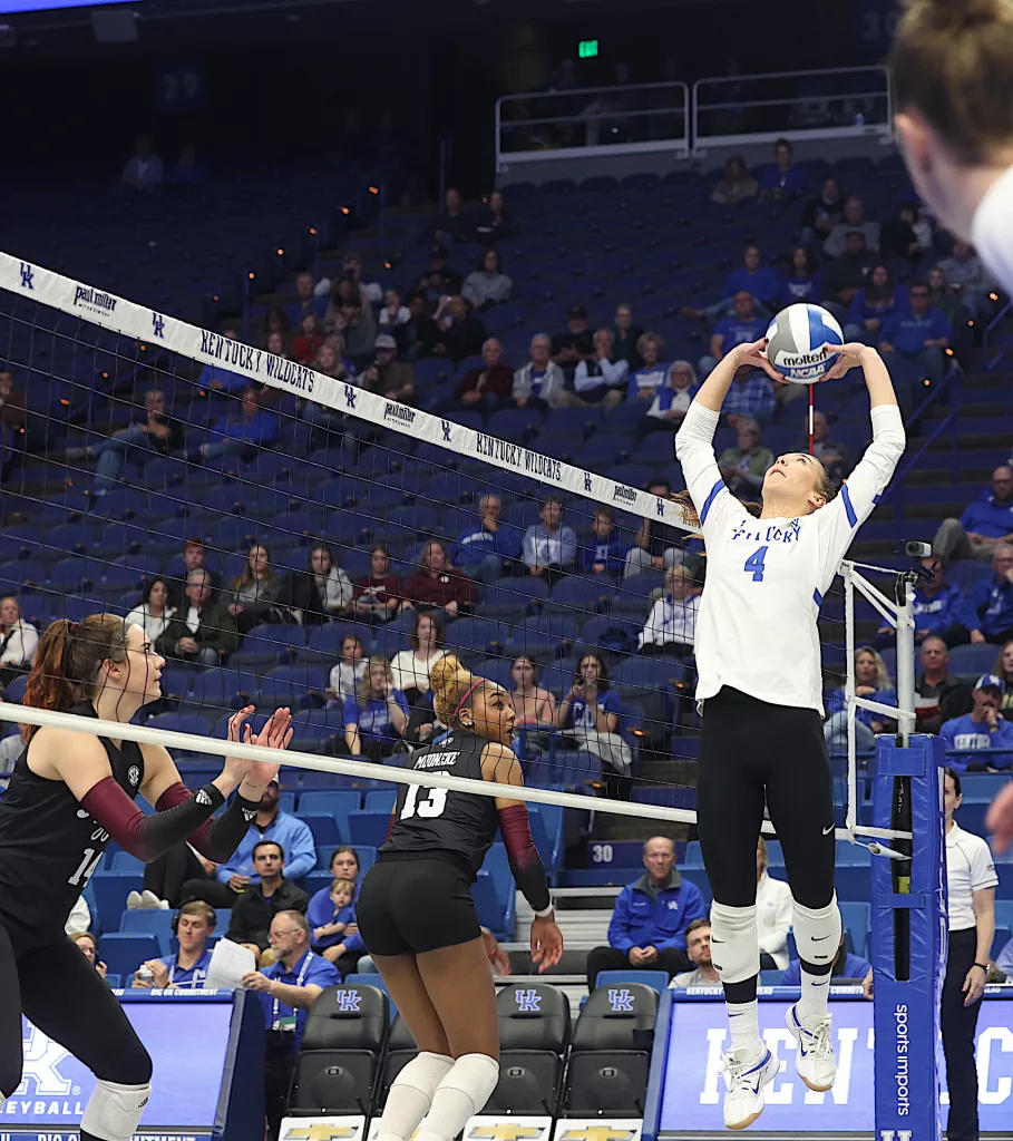 Kentucky had four players with double-digit kills —Brooklyn DeLeye 18, Elise Goetzinger 13, Erin Lamb 12 and Azhani Tealer 12. Tealer hit .688 and also added three blocks.
