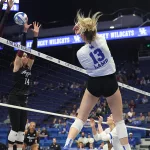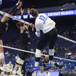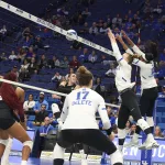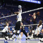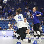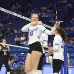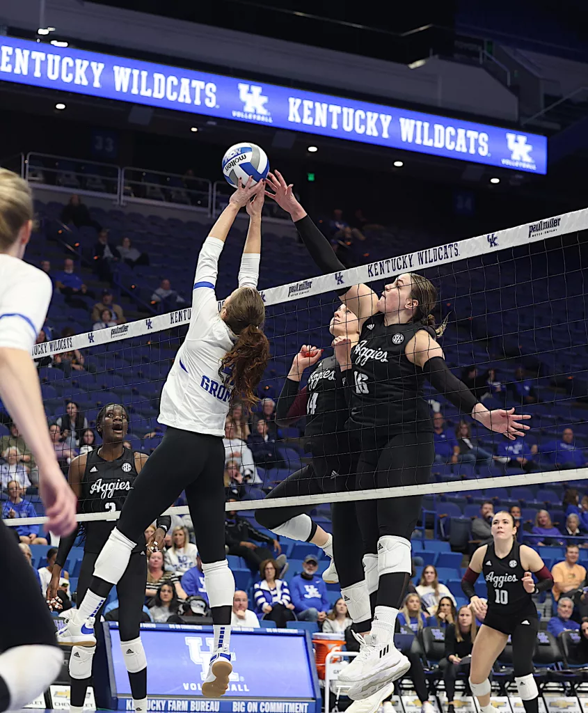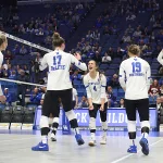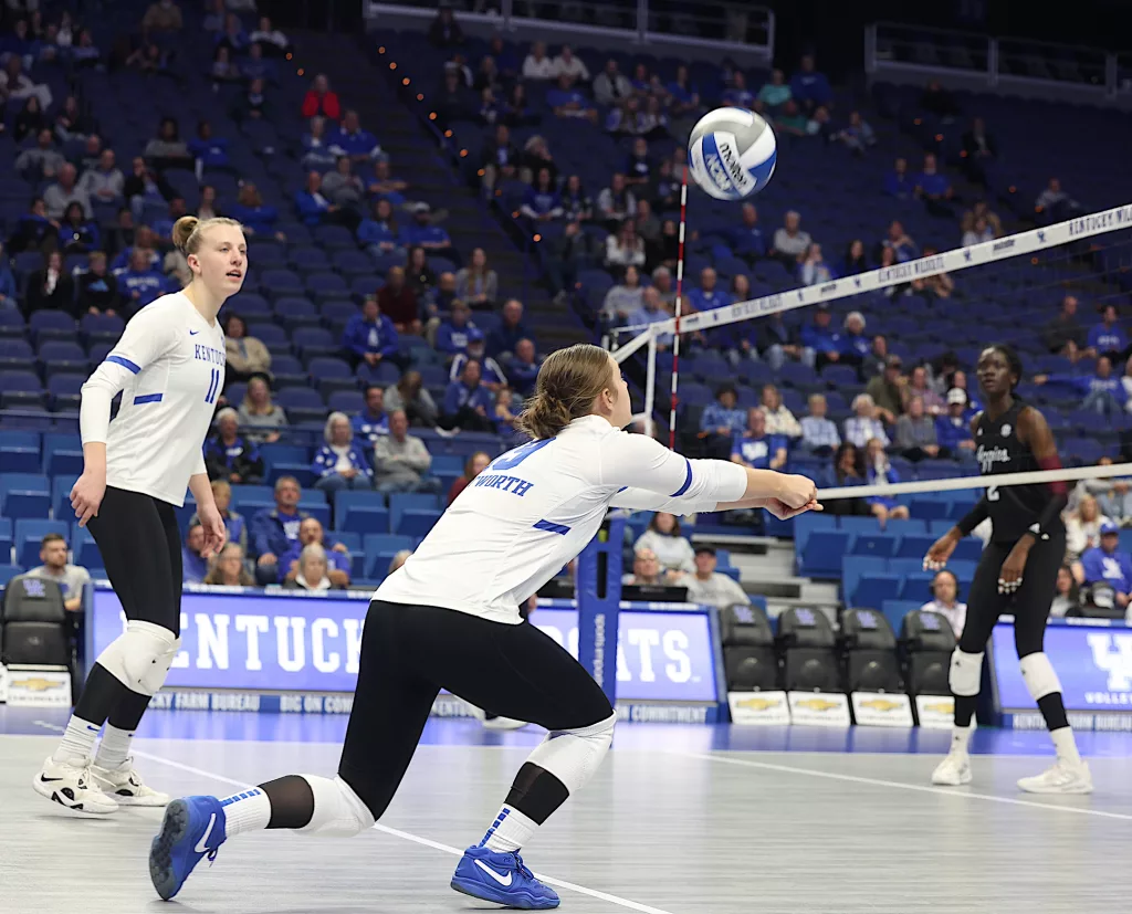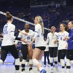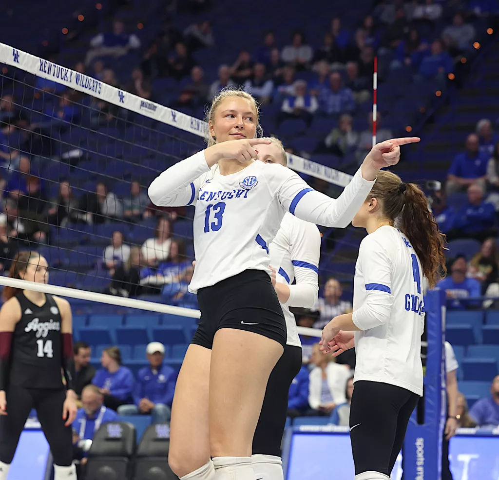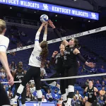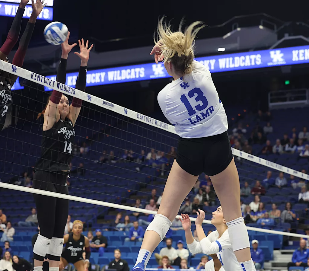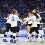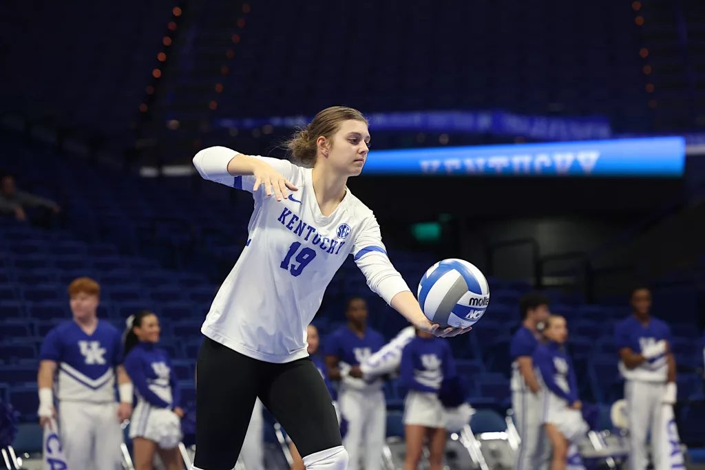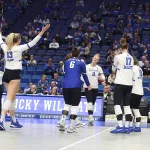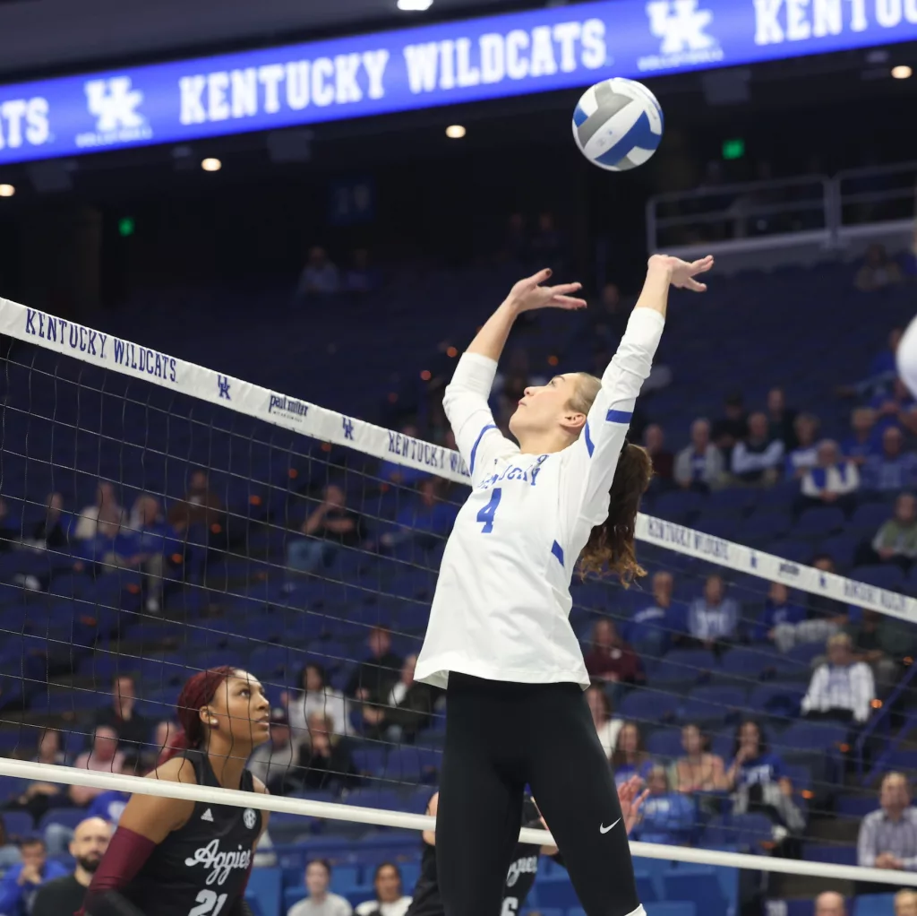 Kentucky had four players with double-digit kills —Brooklyn DeLeye 18, Elise Goetzinger 13, Erin Lamb 12 and Azhani Tealer 12. Tealer hit .688 and also added three blocks.