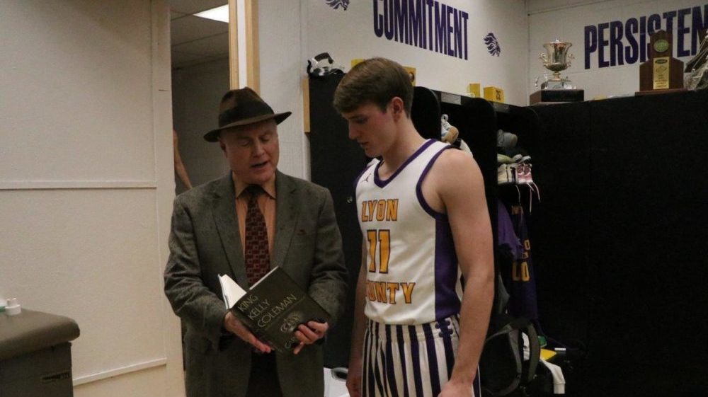 Prior to Thursday night’s game against Calloway County, Kentucky’s all-time leading scorer Travis Perry was presented with the story of the man he passed to reach the top spot on the list. Douglas Sikes, with Acclaim Press, gave Perry a signed, first-edition copy of the biography of King Kelly Coleman. Sikes spoke about the presentation: