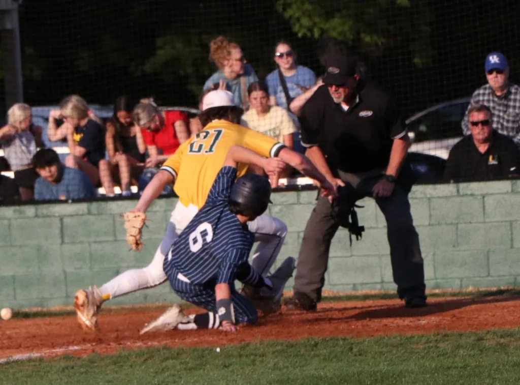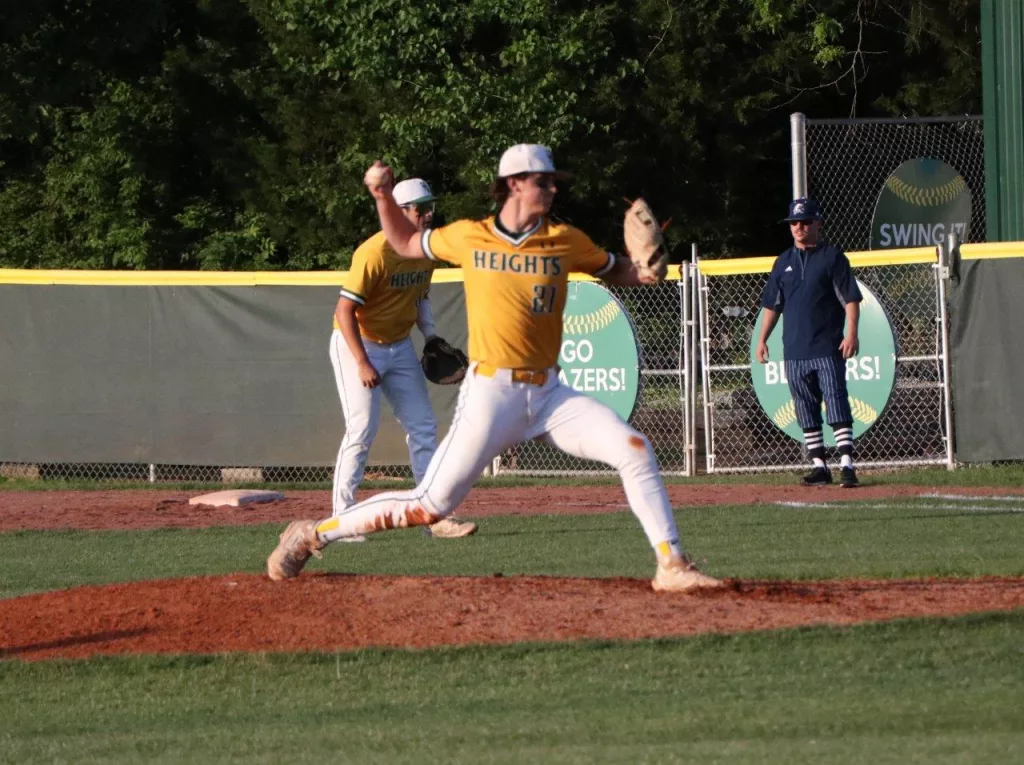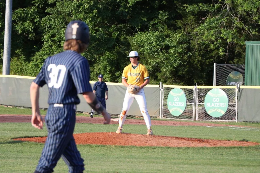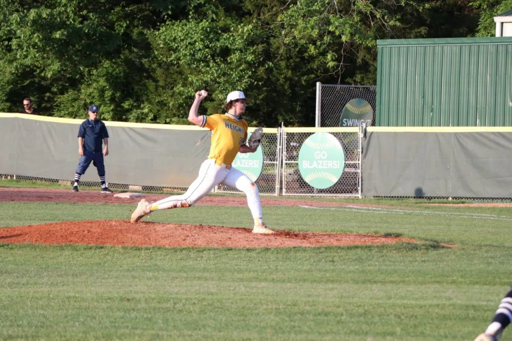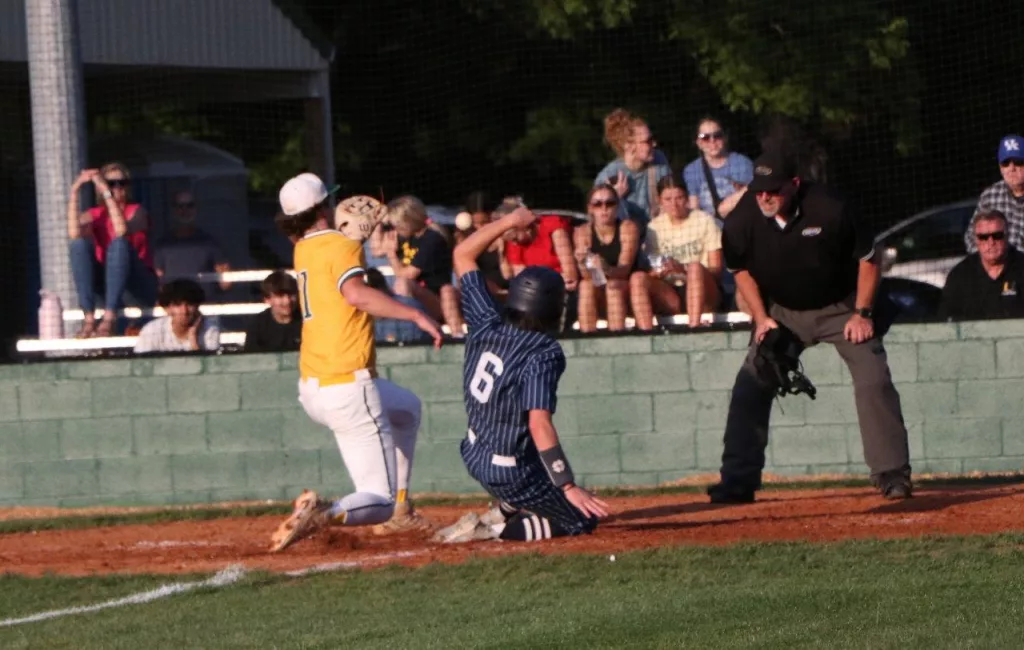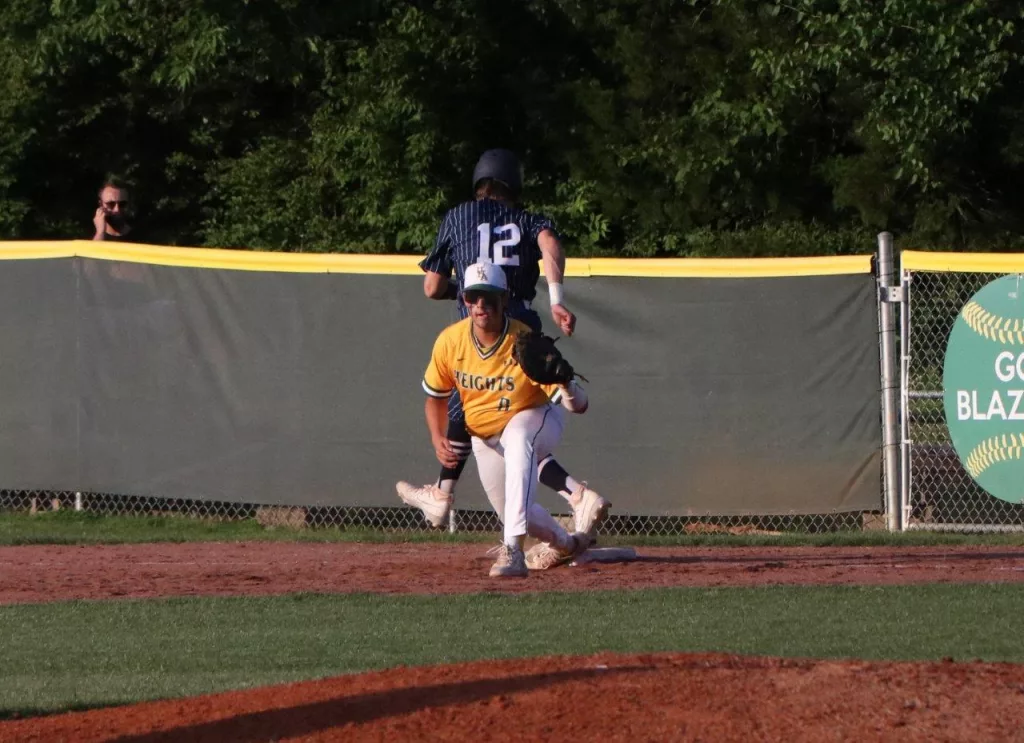 Thomas Hallmark’s RBI single in the bottom of the 6th inning broke a 1-1 tie as the UHA Blazers scored three runs in the inning to take a 4-1 win over the Ohio County Eagles. With the win the Blazers finish the regular season with a record of 21-11.