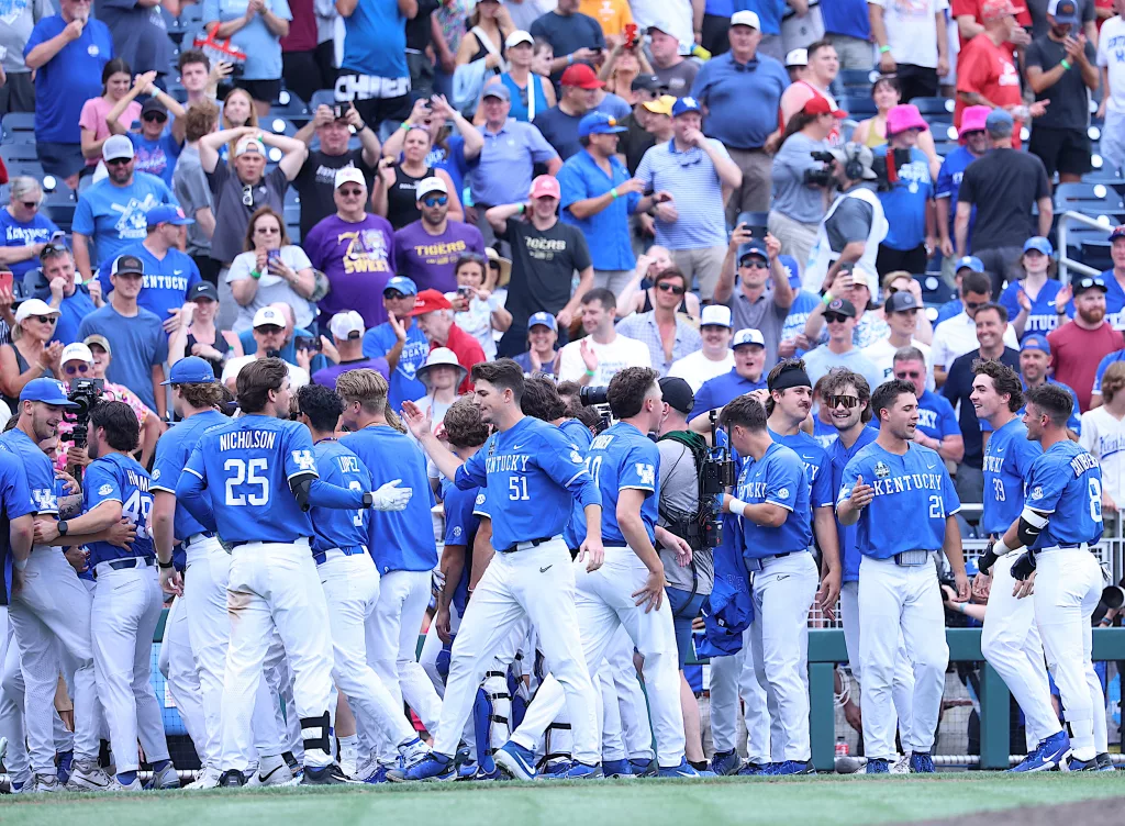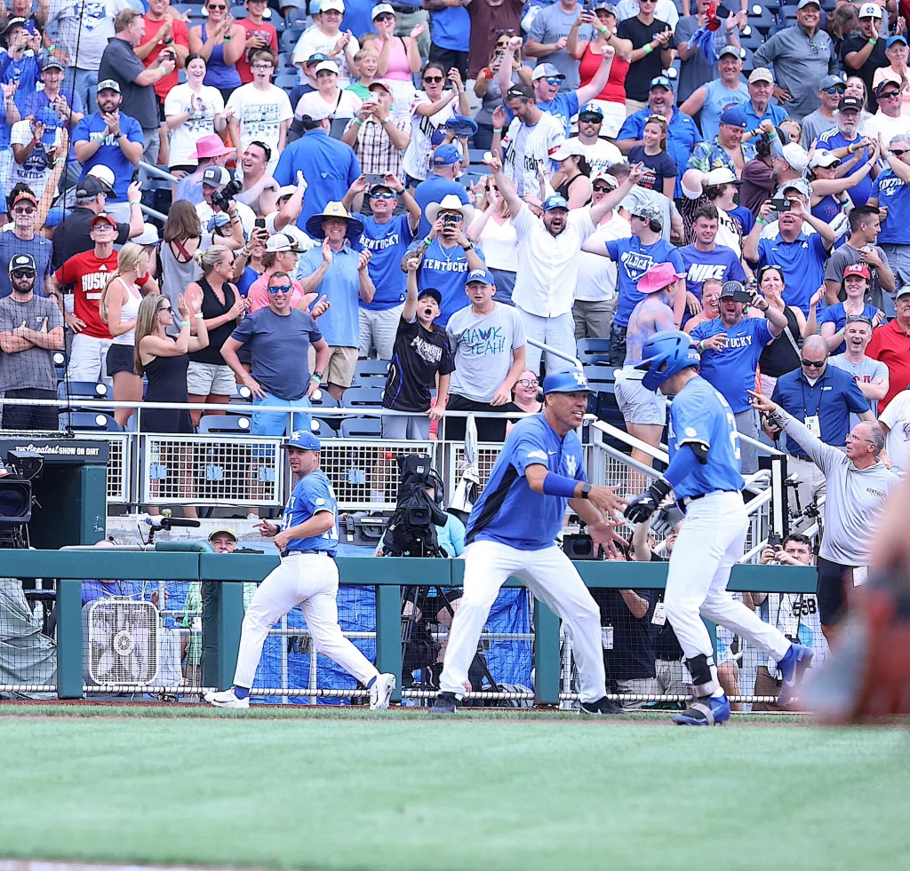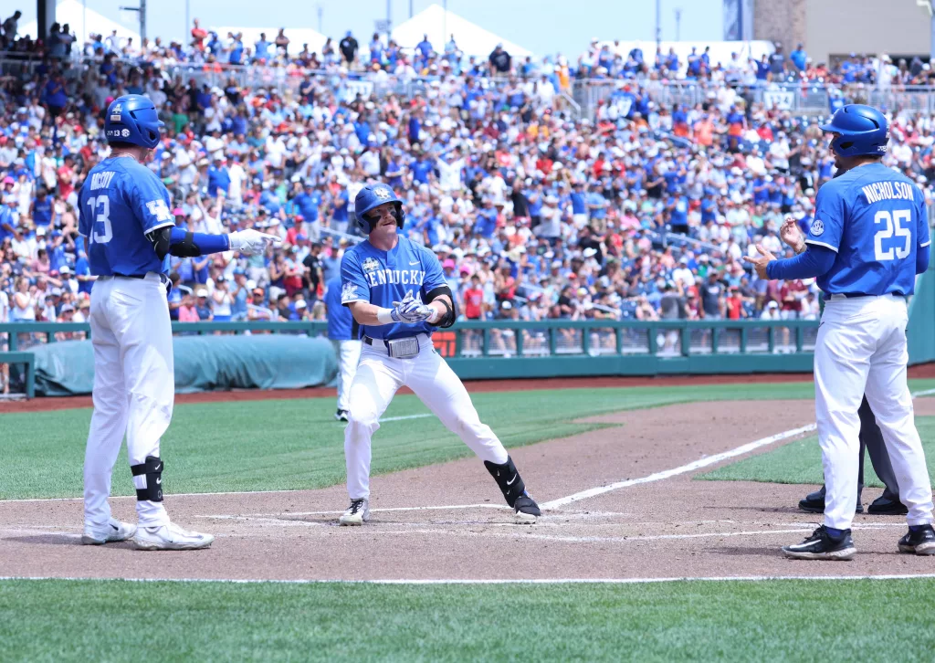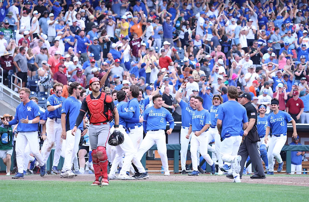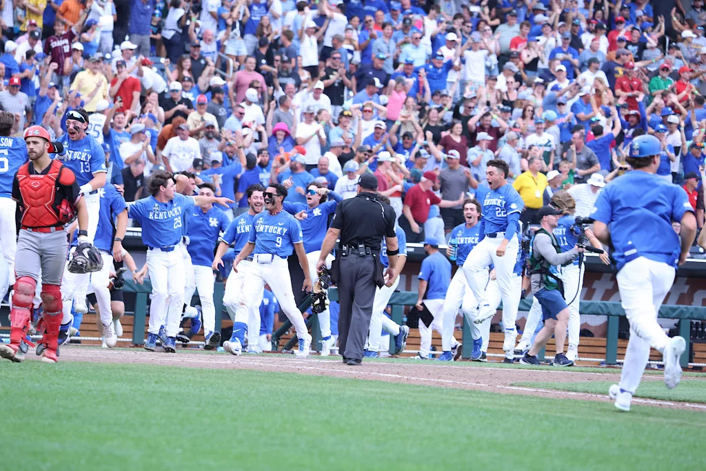 Kentucky came back to defeat NC State, 5-4, in their opening game of the College World Series on Saturday afternoon.