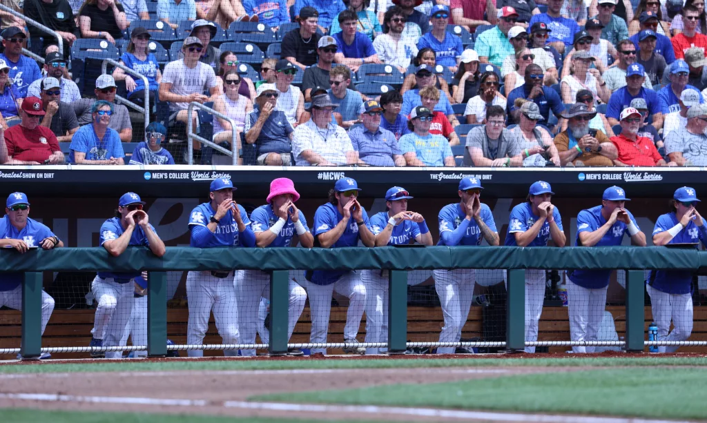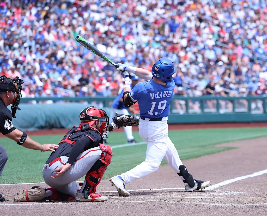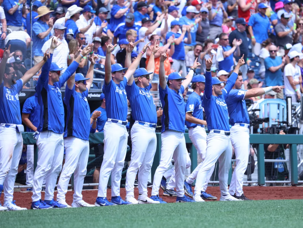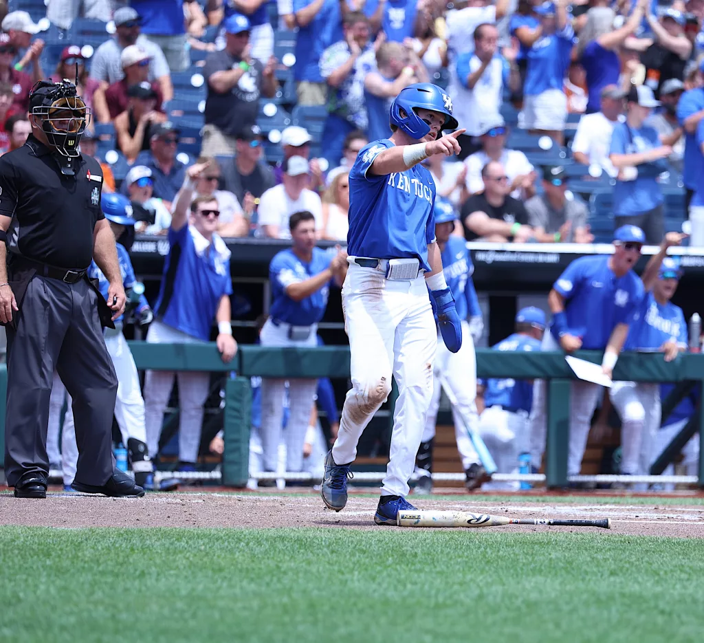Kentucky came back to defeat NC State, 5-4, in their opening game of the College World Series on Saturday afternoon.