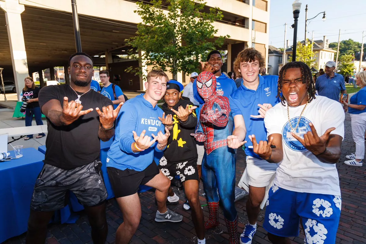 Kentucky tight end Josh Kattus enjoyed meeting a Power Ranger in Ashland.