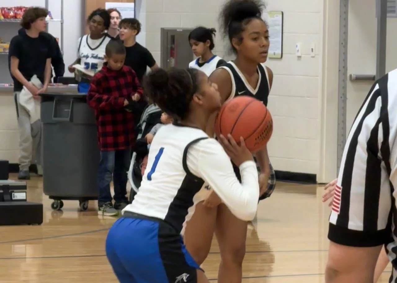 The Lady Falcons were led by hot shooting 7th grader Kyra Benson who nailed three 3-pointers on her way to 15 points. Senior Rosella Rajj and birthday girl A’mari Grimsley each added 14.