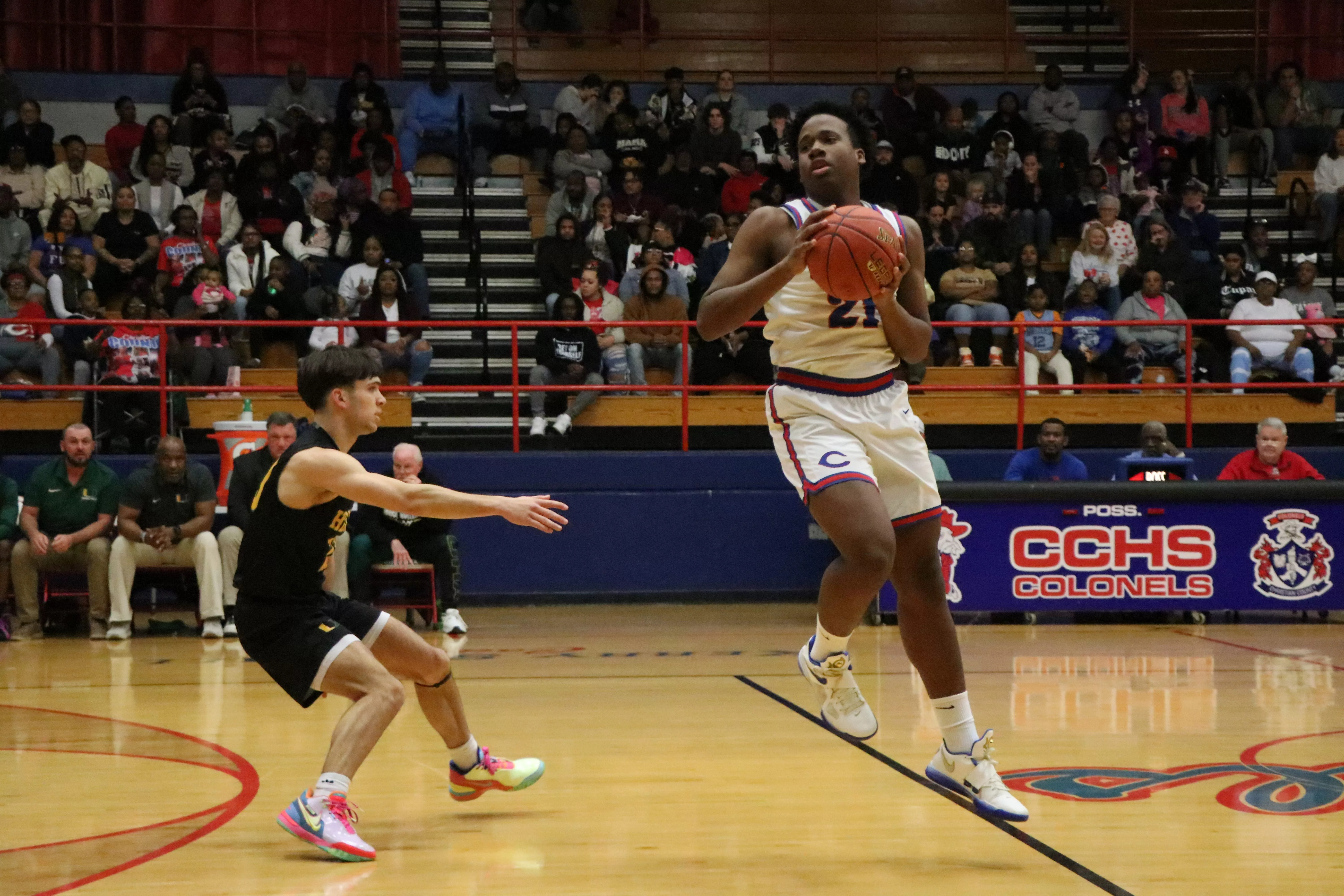 Christian County opened the second half with a couple of baskets from NaDarien Rowe as the Colonels nudged the lead out to 37-28 and appeared to have things rolling in their direction in terms of momentum.