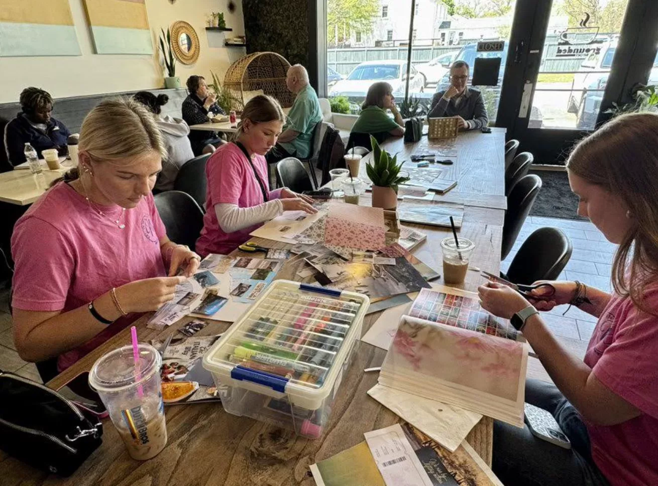 Lizzie Carr, right, with teammates at Grounded All Day Cafe in Lexington Sunday. (Joni Fowler/W1974 Collective Photo)