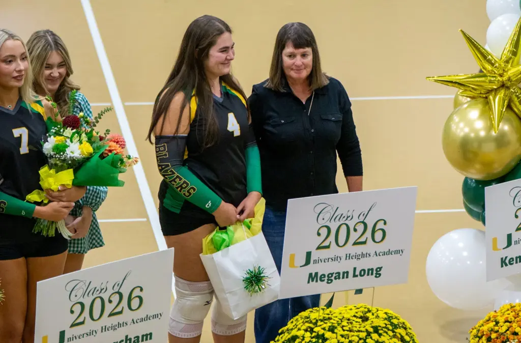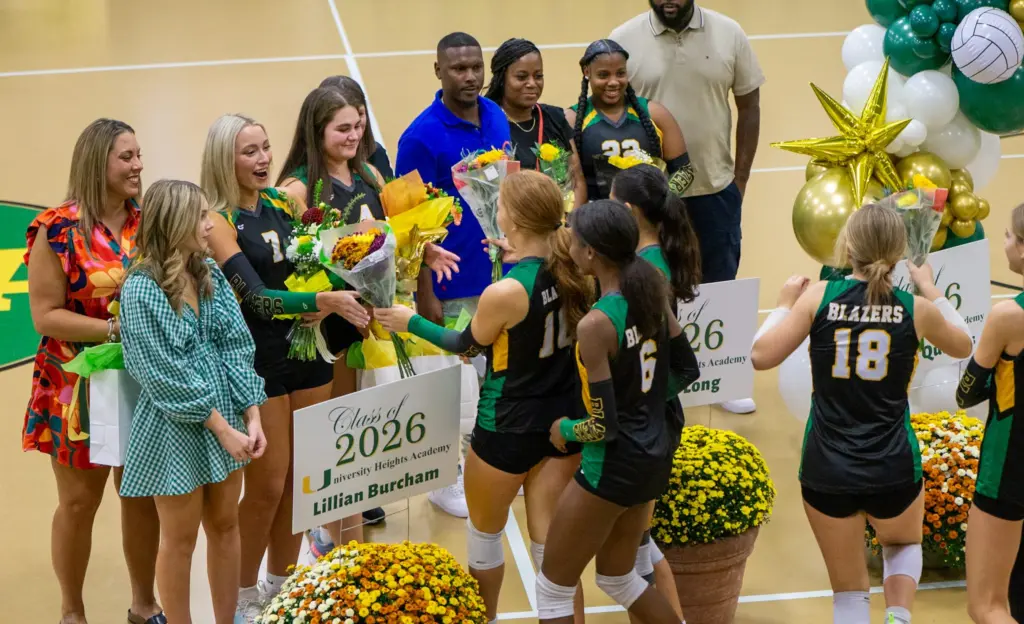 The University Heights Lady Blazers volleyball team had a special night before their Tuesday evening matchup with the Fort Campbell Lady Falcons. They honored their three seniors, and YSE was there to get some shots.