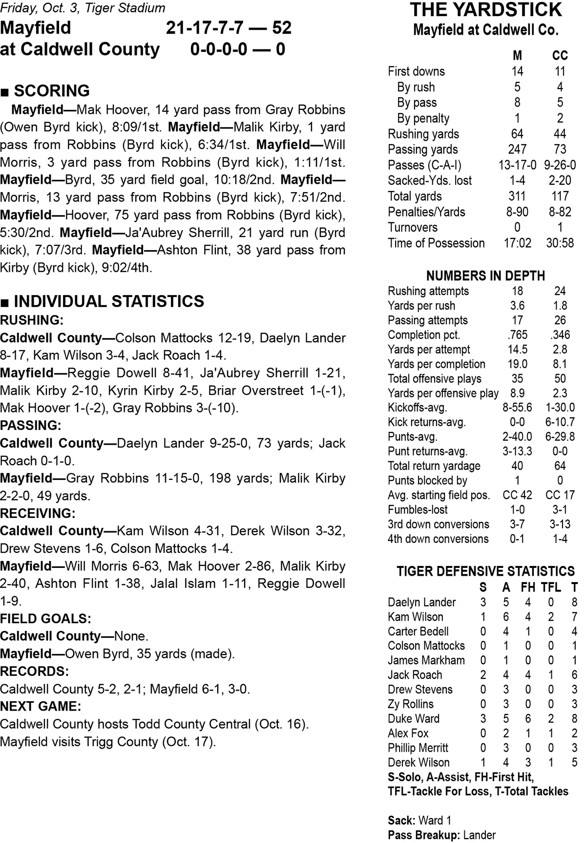 Caldwell County hosted Mayfield Friday night in a Class 2A 1st District contest.
