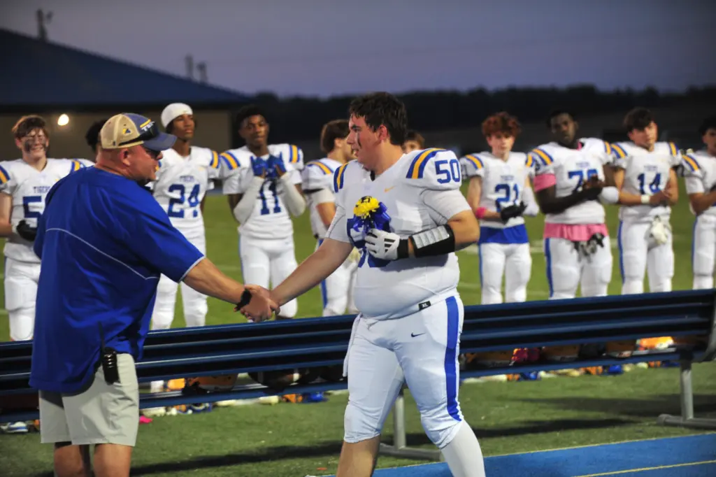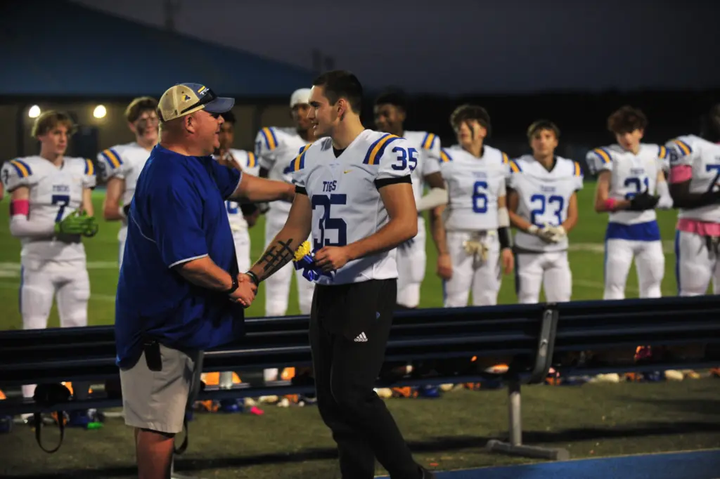 Senior football players are Noah Bailey, Carter Bedell, C.J. Bratcher, Landry Dunbar, Shane Fairrow, Jameson Markham, Jack Roach, Sutton Ritchey, Zy Rollins, Xander Sample and Seth Trusty.