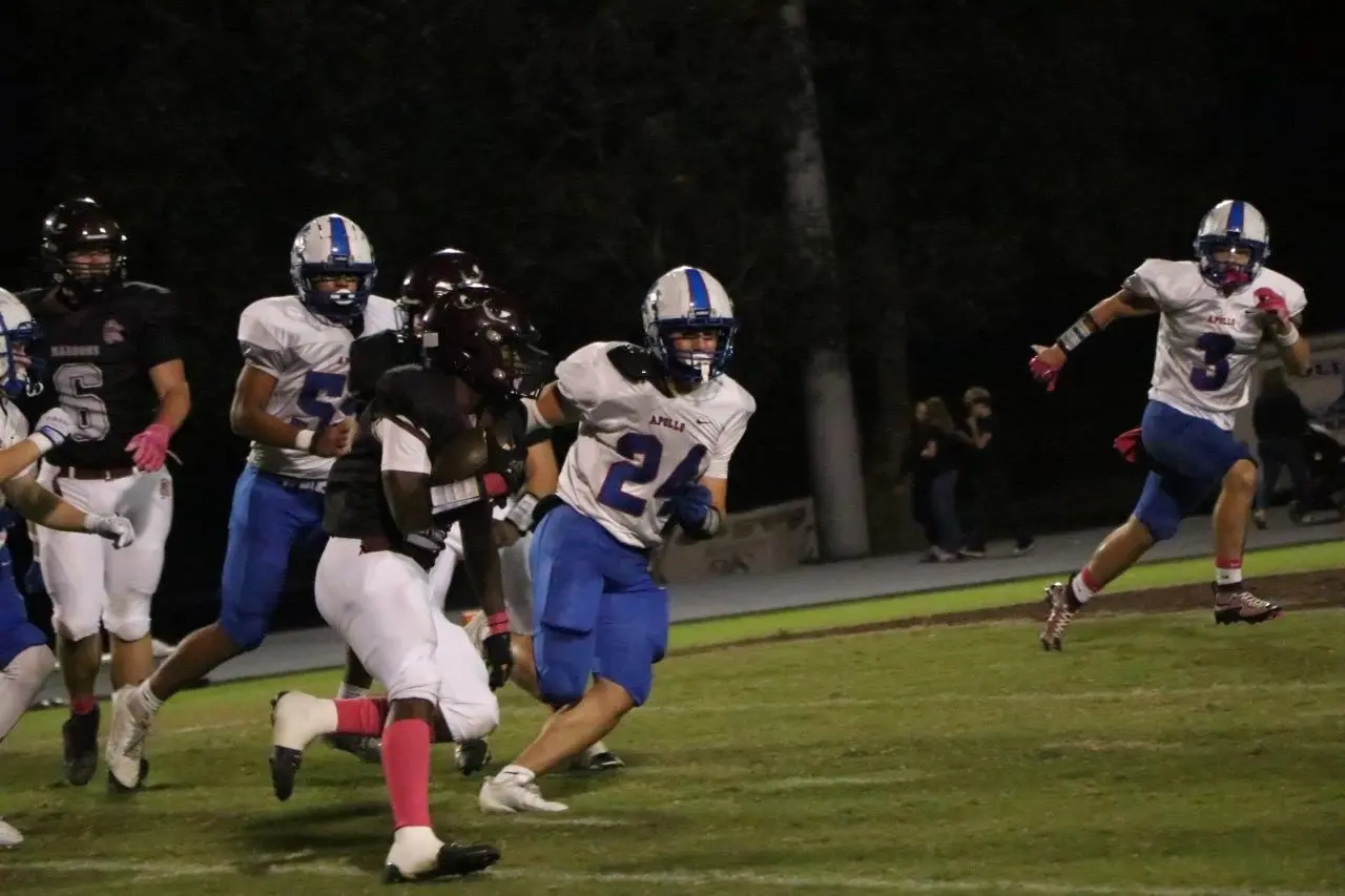 Apollo drove down the field but appeared to have been stopped when they missed a 37-yard field goal with 1:12 to go in the half. However, the Maroons were flagged on the play, and the Eagles were able to continue the drive. The penalty would be costly for the Maroons as Maxwell Johnson hit Eli Williams for a 14-yard touchdown with 20 seconds left in the half as Apollo pushed the lead out to 21-7.