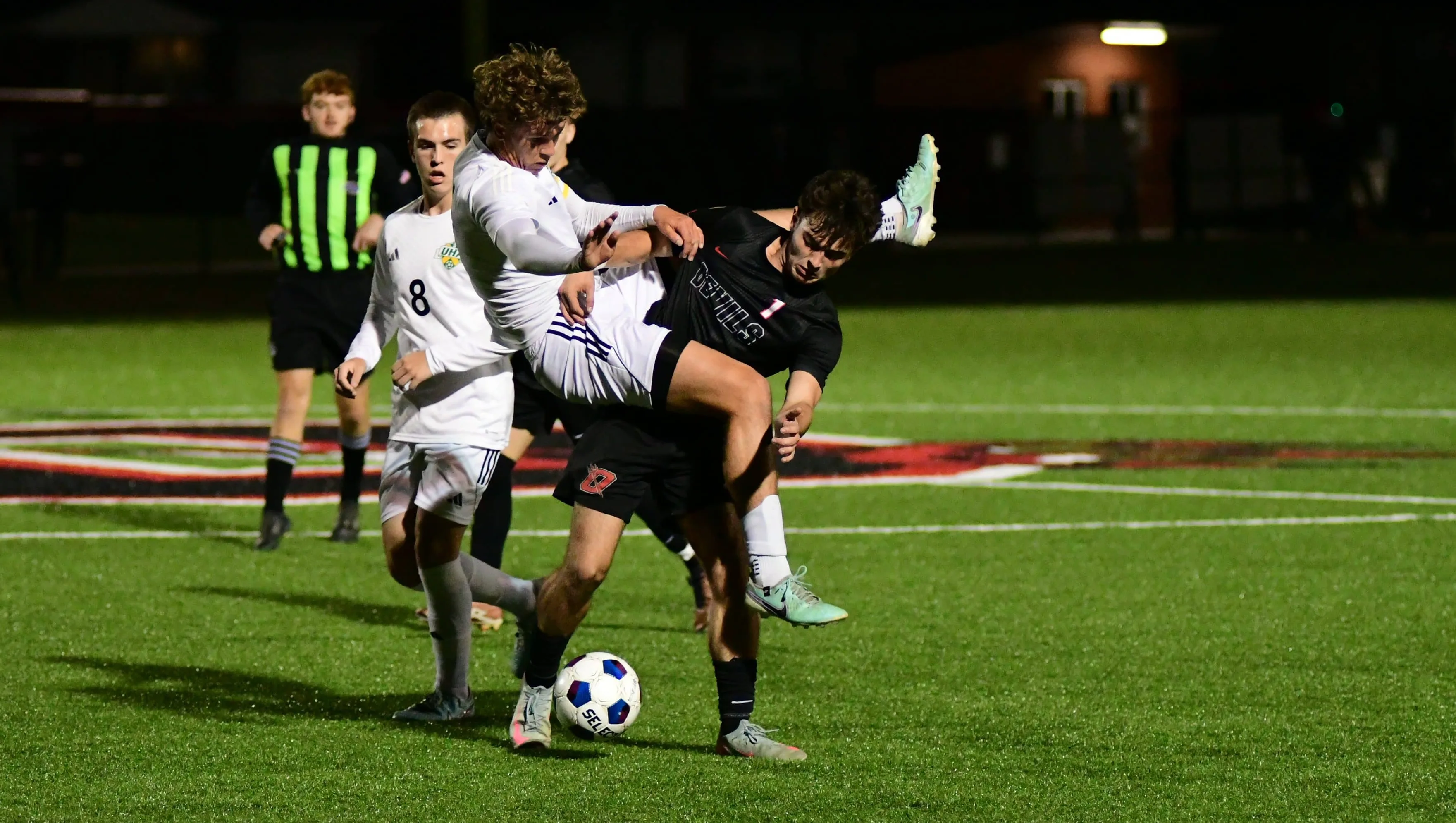 Owensboro broke the game open with three goals in a six-minute stretch toward the end of the half. Max Knoop scored in front with 11:26 left, followed by a Jackson Sigler cross to Denis Juma that put the Red Devils up 3-0 with 9:33 left.